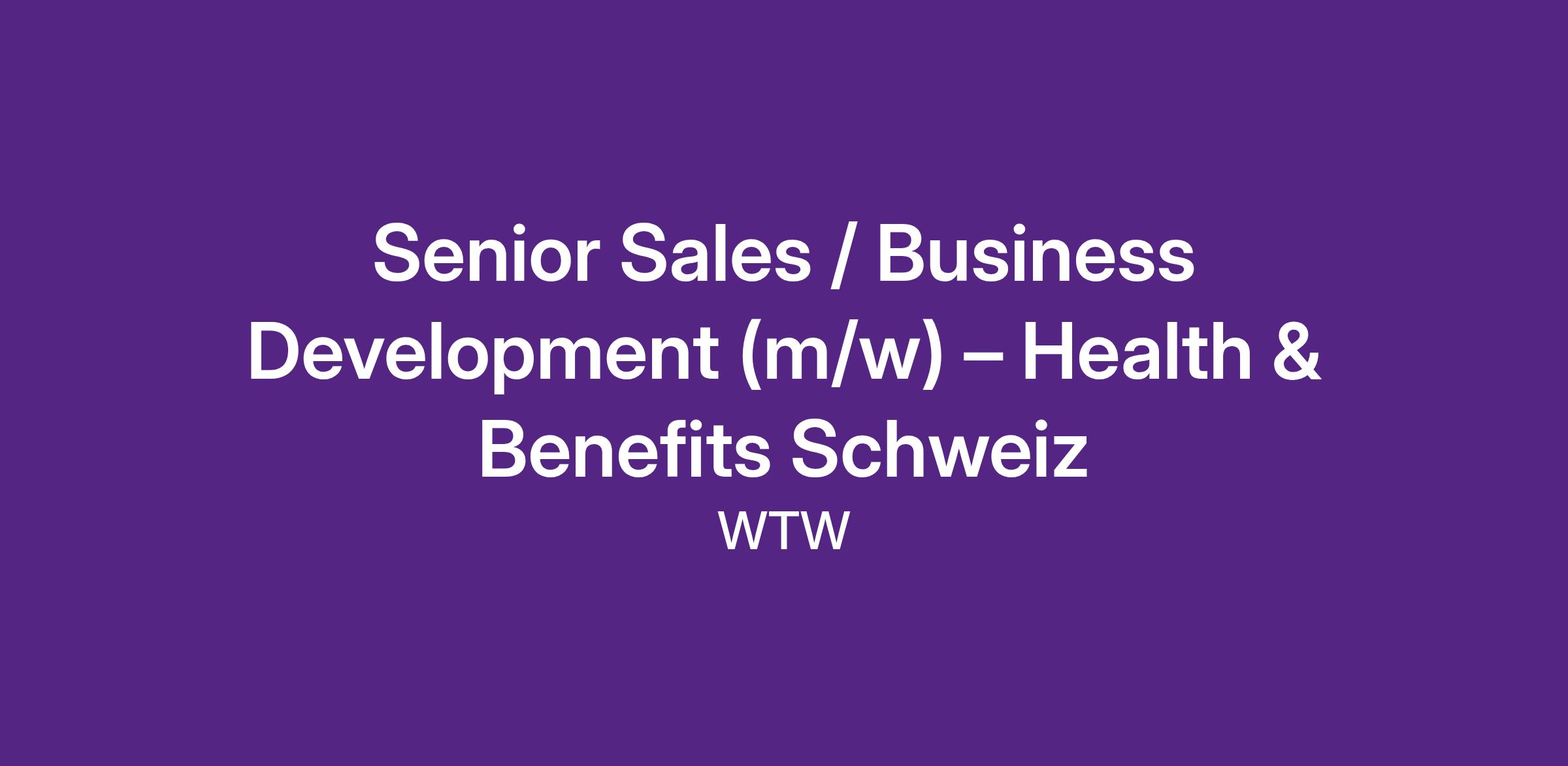Senior Sales / Business Development (m/w) – Health & Benefits Schweiz