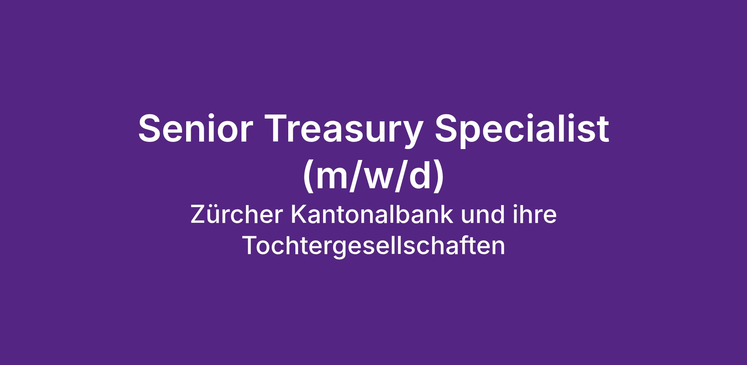Als Senior Treasury Specialist im Team Refinanzierung / Liquiditätsrisikosteuerung der Zürcher Kantonalbank übernimmst du eine wichtige Rolle im Bereich Liquiditätsrisikosteuerung. Du verfolgst das Marktgeschehen sowie die regulatorischen Entwicklungen und arbeitest mit unterschiedlichen Bereichen unserer Bank zusammen. Wir bieten dir eine Tätigkeit mit viel Raum für Eigeninitiative sowie die Möglichkeit deine Expertise sowie deine analytischen und konzeptionellen Fähigkeiten einzubringen.