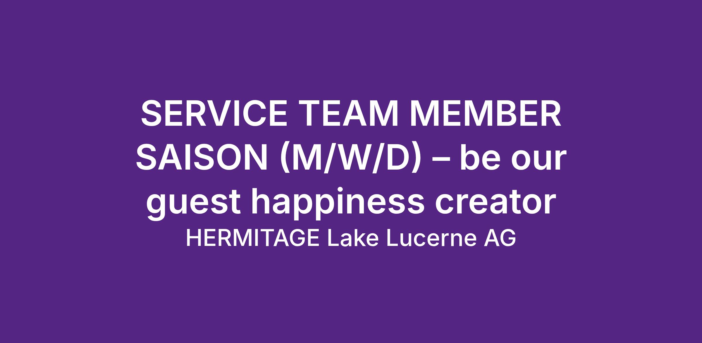 Bist du interessiert? Wir freuen uns auf deine online Bewerbung inklusiv Lebenslauf und Arbeitszeugnisse. Welcome to HERMITAGE «where good vibes make people happy»