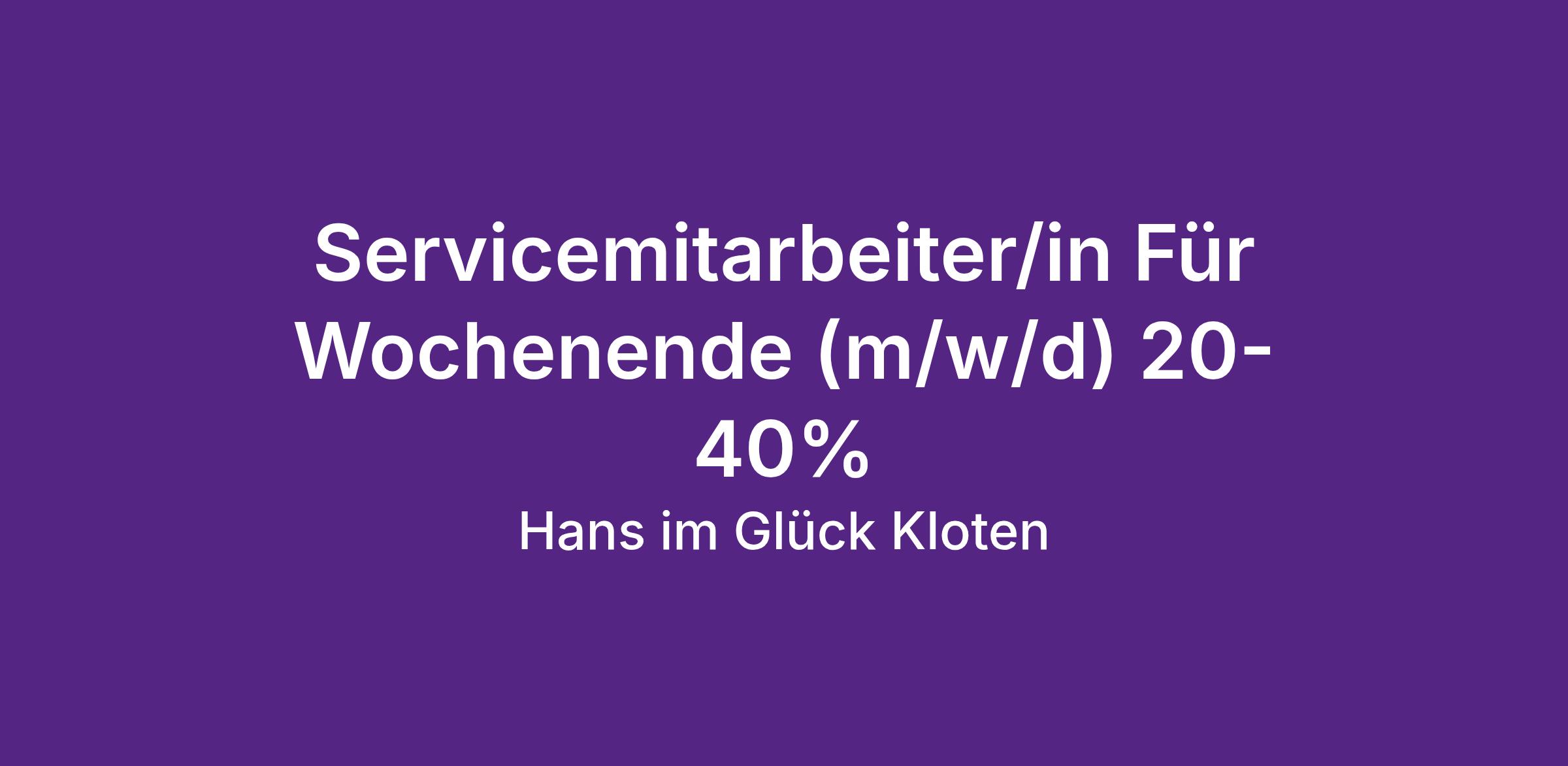 Für unseren Standort in Kloten suchen wir ab sofort freundliche und motivierte
