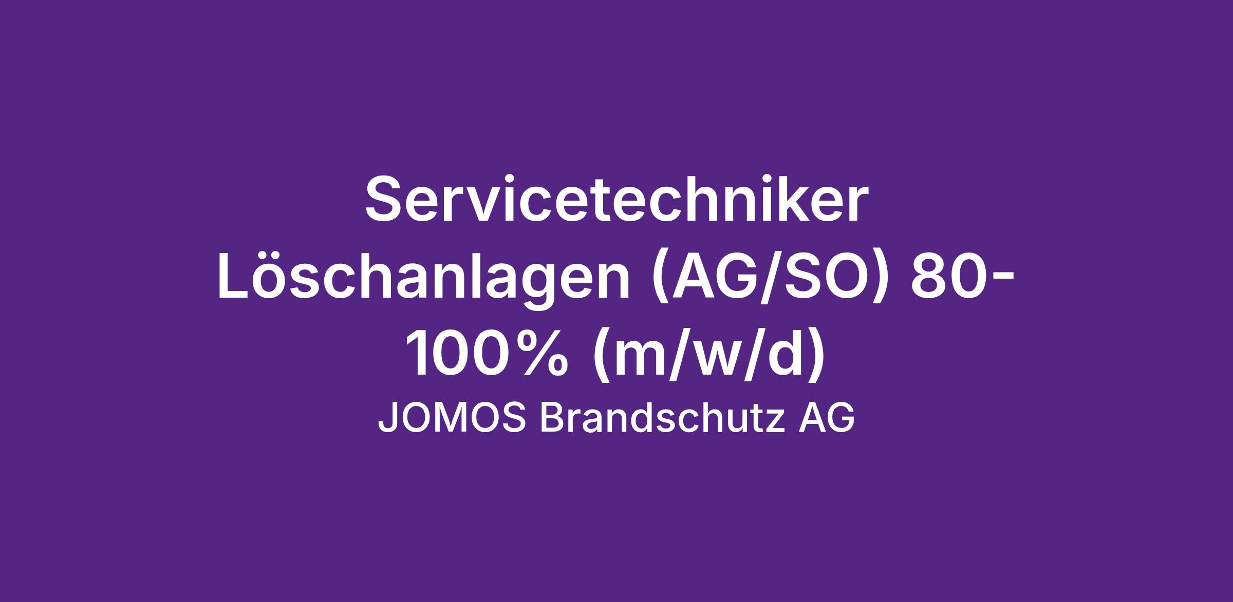 Die JOMOS Brandschutz AG mit Sitz in Balsthal und rund 180 Mitarbeitenden ist ein führendes Unternehmen auf dem spannenden Gebiet des technischen Brandschutzes. Seit 2018 gehört die Unternehmung zur internationalen VINCI-Gruppe. Für das Geschäftsfeld Löschung suchen wir Verstärkung.