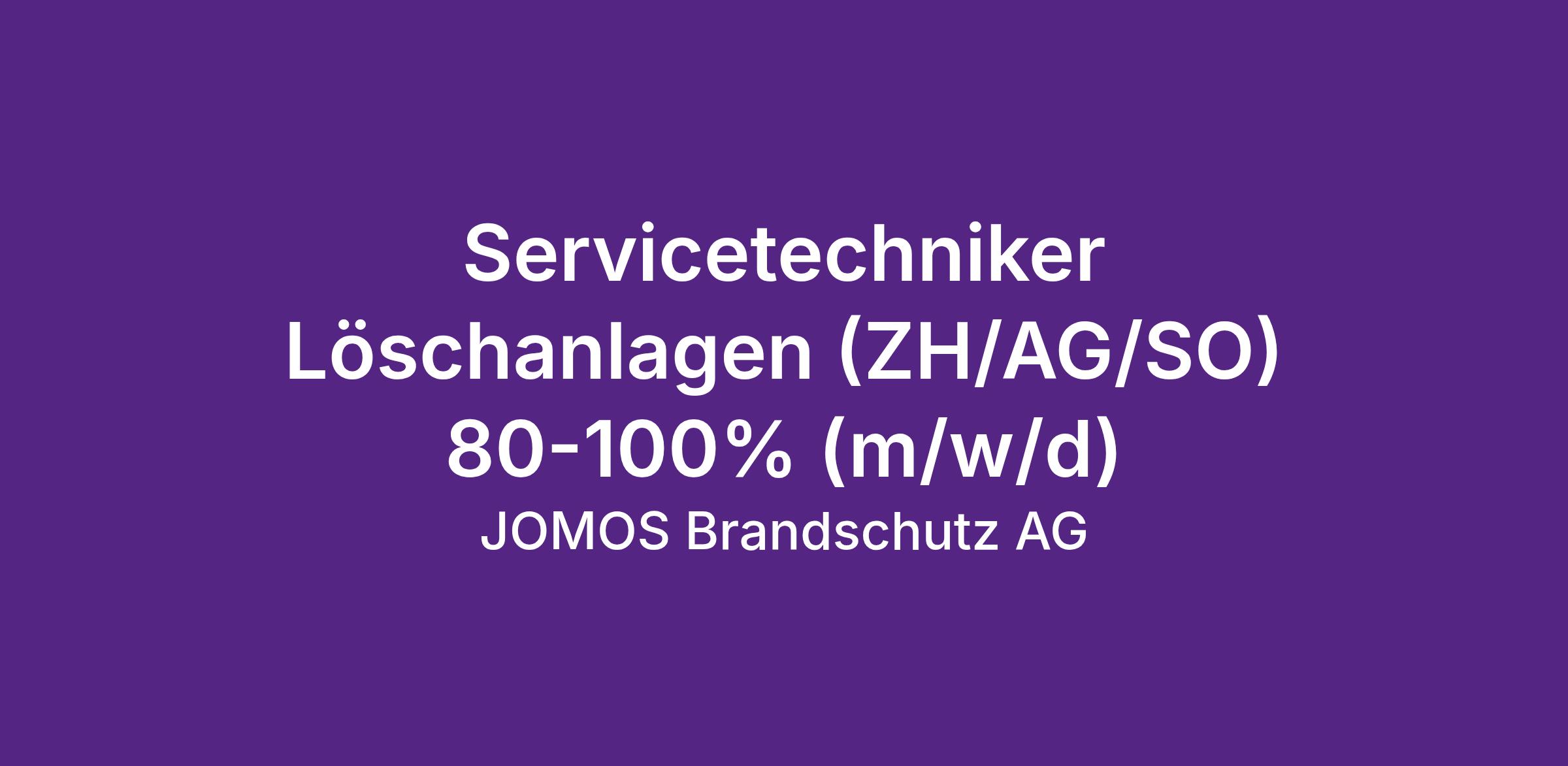 Die JOMOS Brandschutz AG mit Sitz in Balsthal und rund 180 Mitarbeitenden ist ein führendes Unternehmen auf dem spannenden Gebiet des technischen Brandschutzes. Seit 2018 gehört die Unternehmung zur internationalen VINCI-Gruppe. Für das Geschäftsfeld Löschung suchen wir Verstärkung.