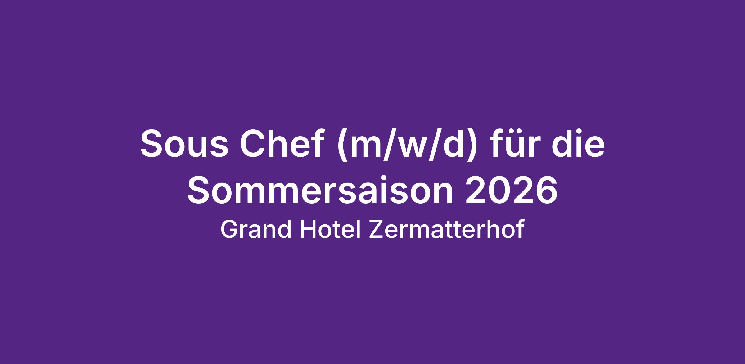 Sous Chef (m/w/d) für die Sommersaison 2026