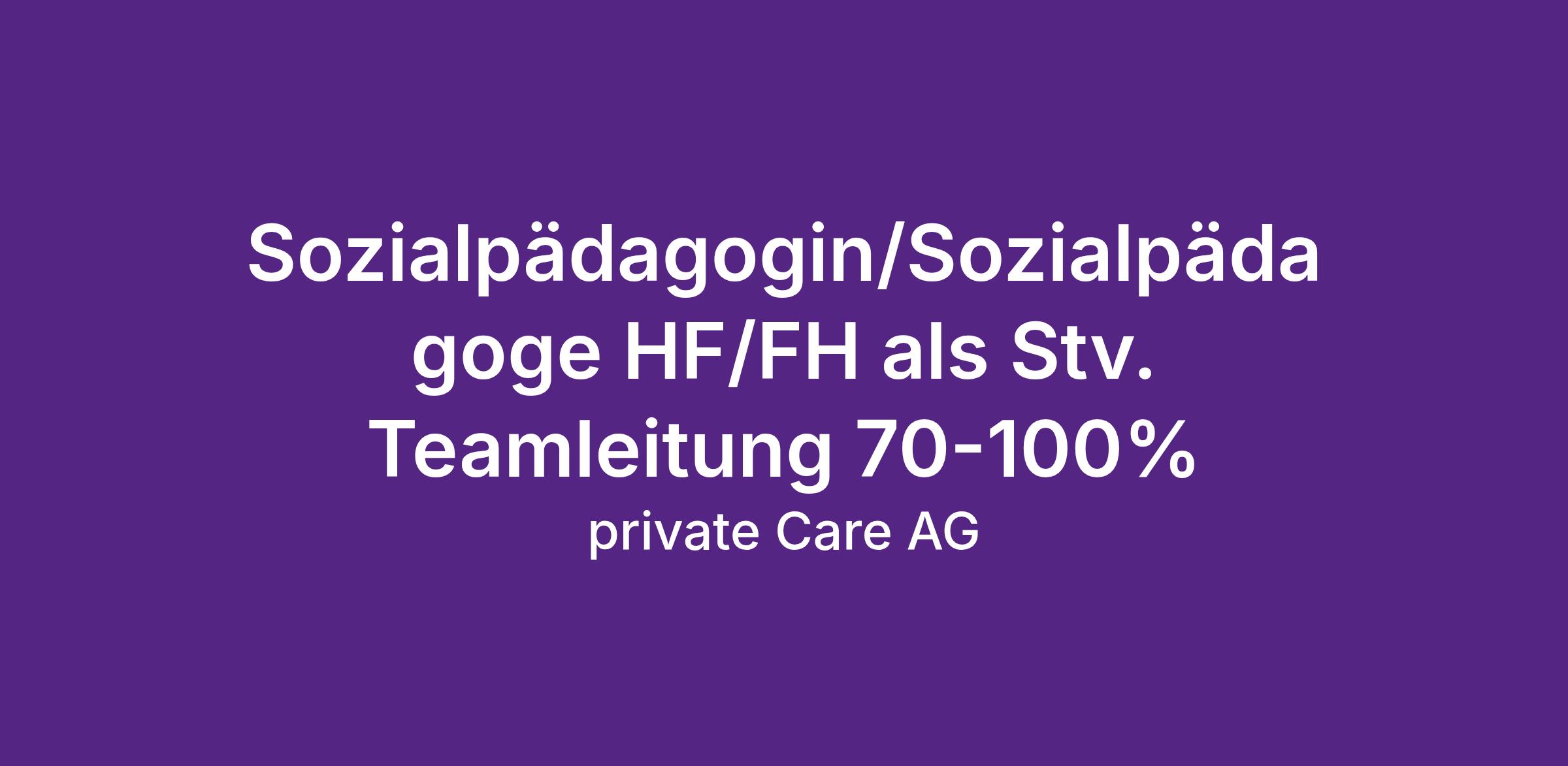 Die Private Care AG ist ein dynamisches, zukunftsorientiertes Unternehmen, welches private Pflegedienstleistungen in den Kantonen Aargau, Zürich, St. Gallen, Zug, Schwyz, Solothurn und Schaffhausen anbietet sowie spezialisierte Fachkräfte aus Pflege und Gesundheitswesen in der deutschsprachigen Schweiz vermittelt.