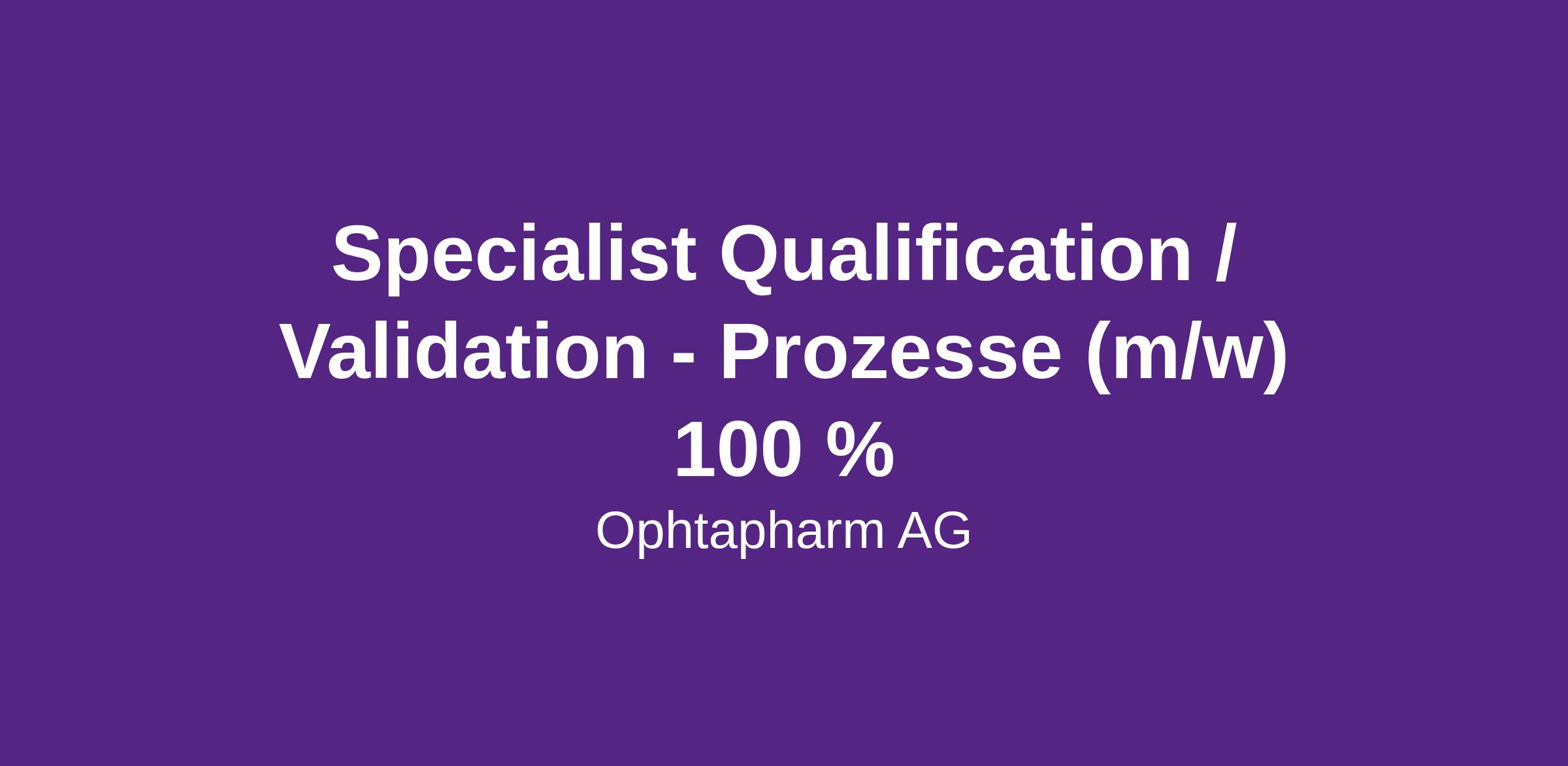 Specialist Qualification / Validation - Prozesse (m/w) 100 %