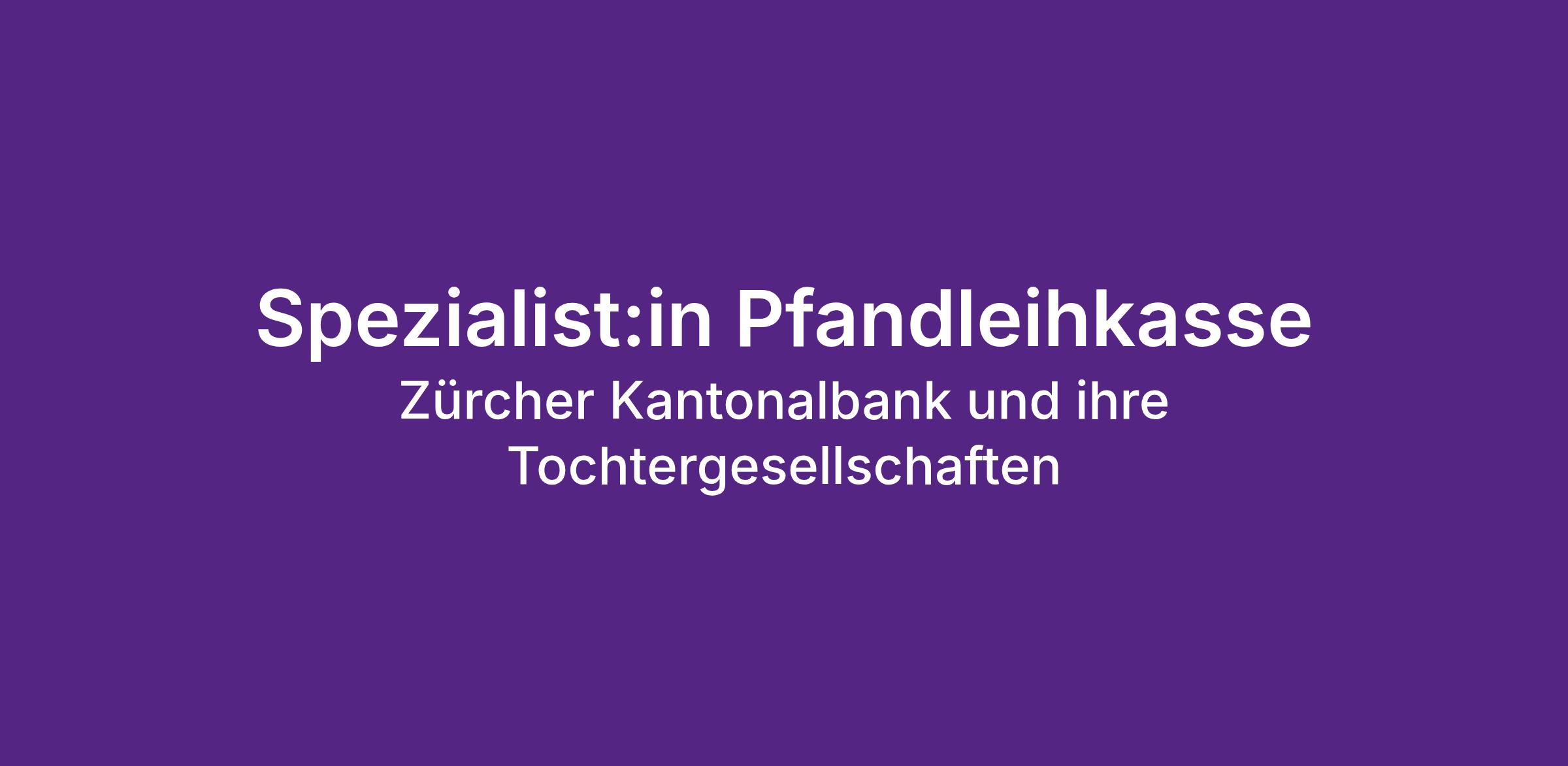 Als einzige Pfandleihkasse im Kanton Zürich unterstützen wir unsere Kundinnen und Kunden aus der ganzen Schweiz bei vorübergehenden Liquiditätsengpässen. Wenn du Freude und Engagement für unseren Leistungsauftrag im Rahmen der Zürcher Kantonalbank mitbringst, freuen wir uns auf deine Bewerbung.