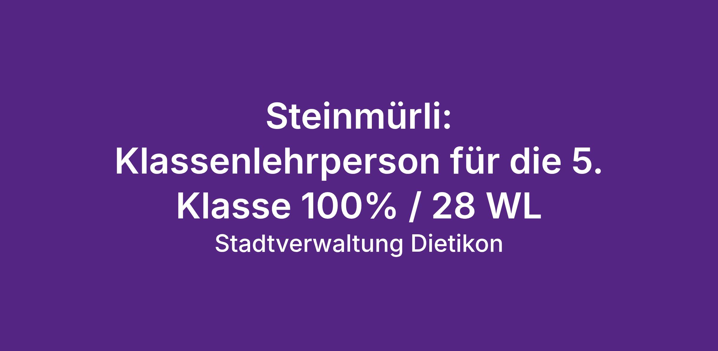 Steinmürli: Klassenlehrperson für die 5. Klasse 100% / 28 WL