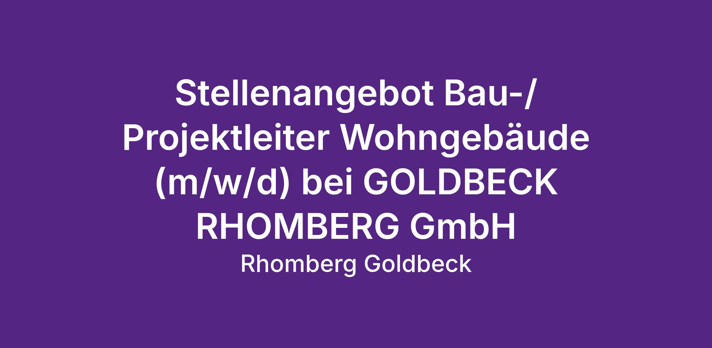GOLDBECK RHOMBERG konzipiert und errichtet zukunftsweisende und nachhaltige Gewerbe- Industrie- und Wohngebäude. 275 Teamplayer teilen gemeinsame Ziele und Werte und beschreiten dabei oftmals individuelle Wege zum Erfolg. 2001 gegründet, entwickelt sich GOLDBECK RHOMBERG stets weiter zu einem Marktführer und agiert als General- und Totalunternehmer im Gewerbe- Industrie- und Wohngebäudemarkt in Österreich, Schweiz und Liechtenstein. Der Hauptsitz des Unternehmens ist in Wolfurt (AT). Weitere Standorte sind in Wien, Salzburg, Linz, Graz, Tirol, Ruggell (FL), Luzern (CH) und St. Gallen (CH).