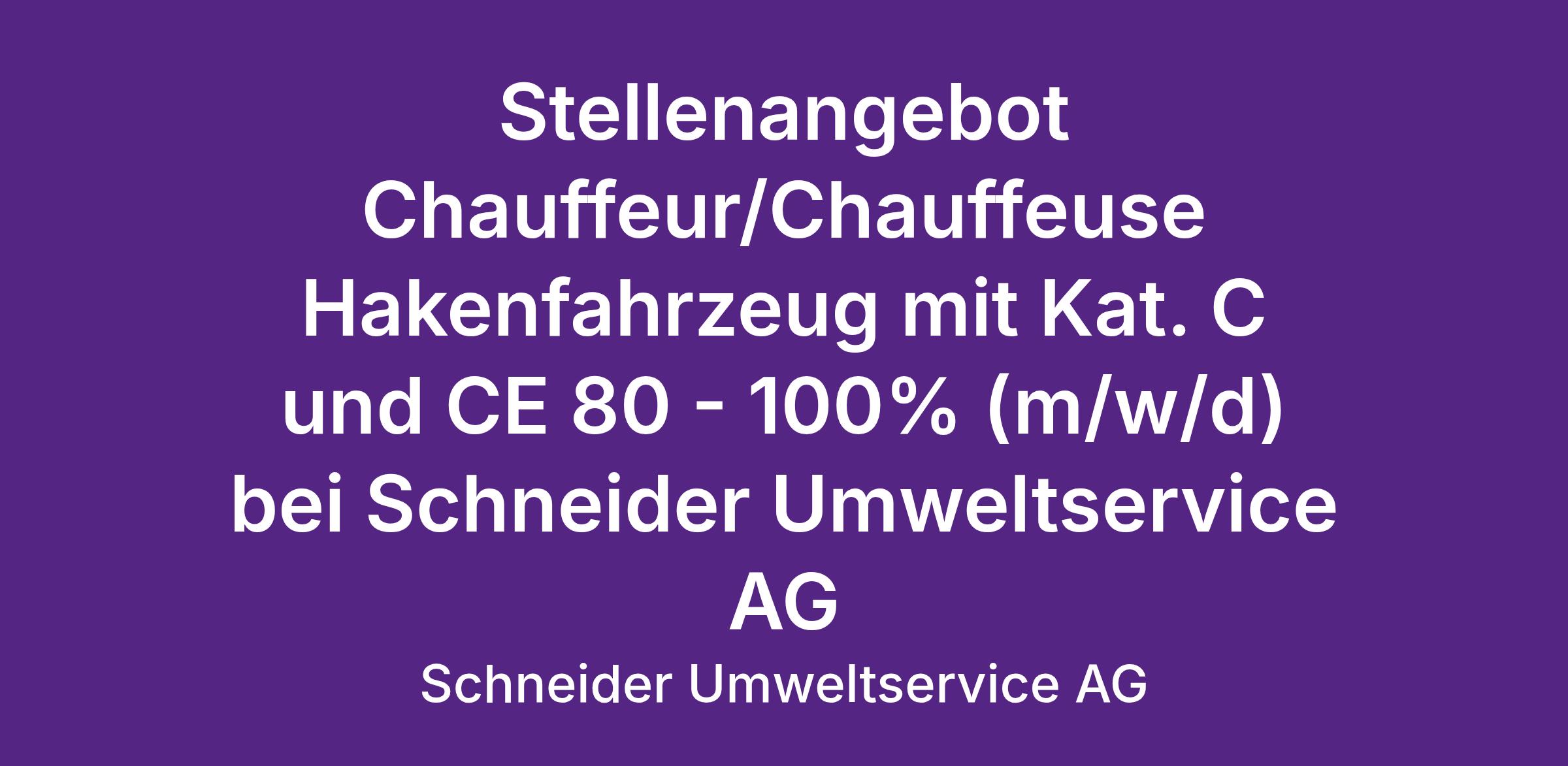 Stellenangebot Chauffeur/Chauffeuse Hakenfahrzeug mit Kat. C und CE 80 - 100% (m/w/d) bei Schneider Umweltservice AG