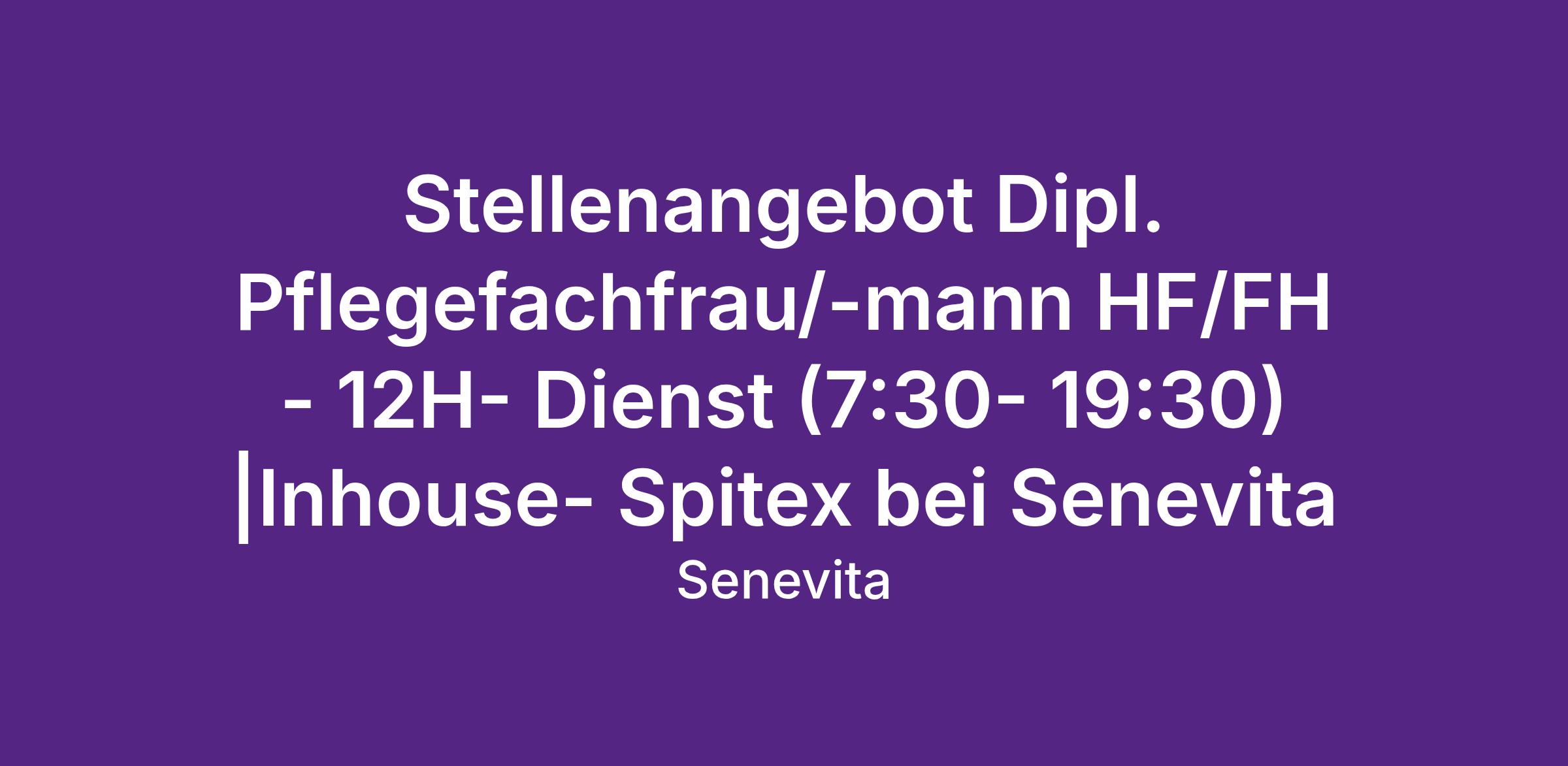 Für unsere Inhouse-Spitex im Senevita Limmatfeld suchen wir eine fachlich kompetente und engagierte Dipl. Pflegefachfrau / einen Dipl. Pflegefachmann HF/FH.