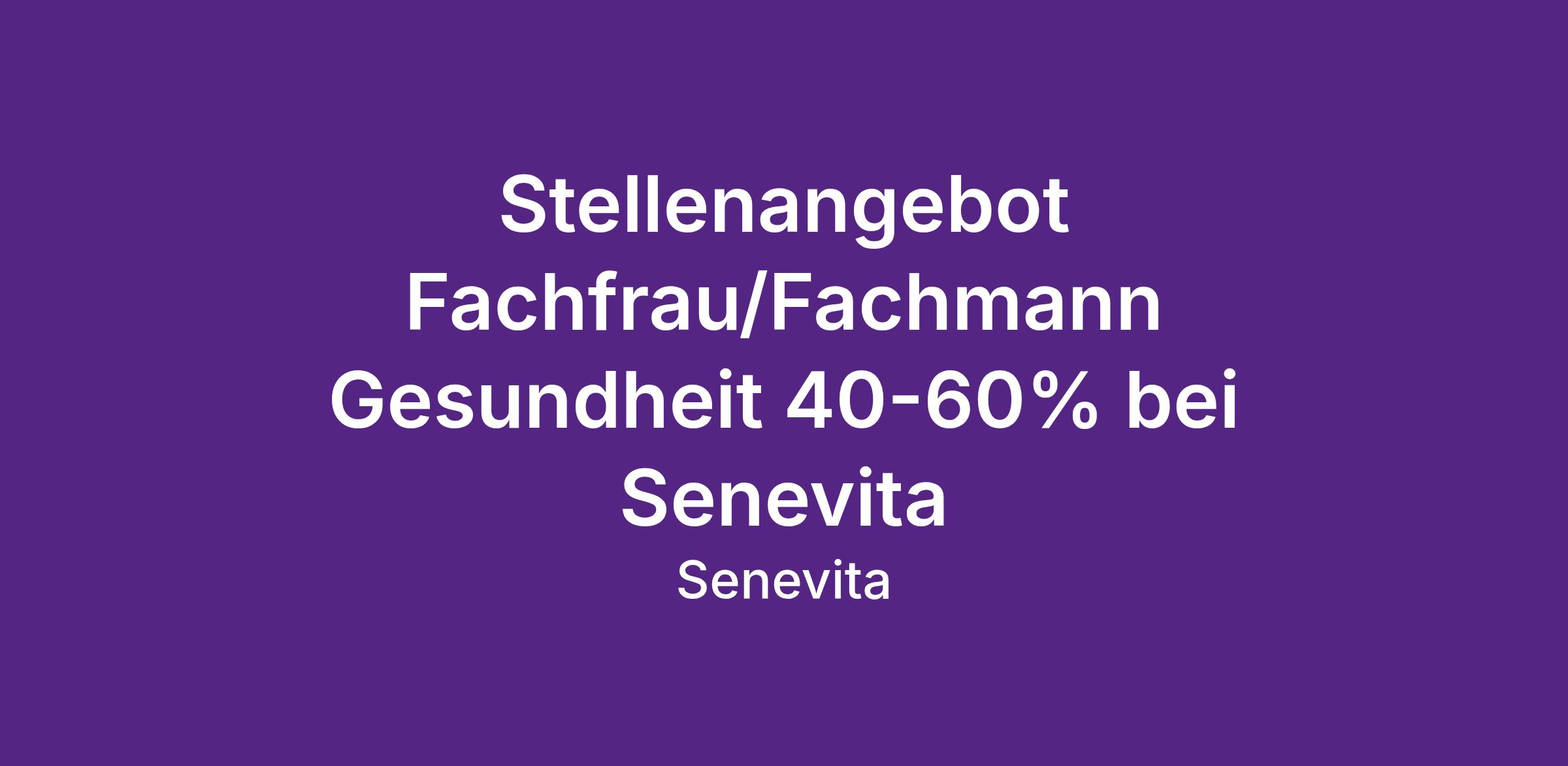 Senevita ist die grösste integrierte Anbieterin von Dienstleistungen im Alter und beschäftigt rund 4'000 Mitarbeitende. Ambulante und stationäre Angebote gehen nahtlos ineinander über. Während die Senevita Standorte für selbstständiges betreutes Wohnen und umfassende Pflege stehen, ist Senevita Casa die schweizweit führende Anbieterin privater Spitex-Leistungen.