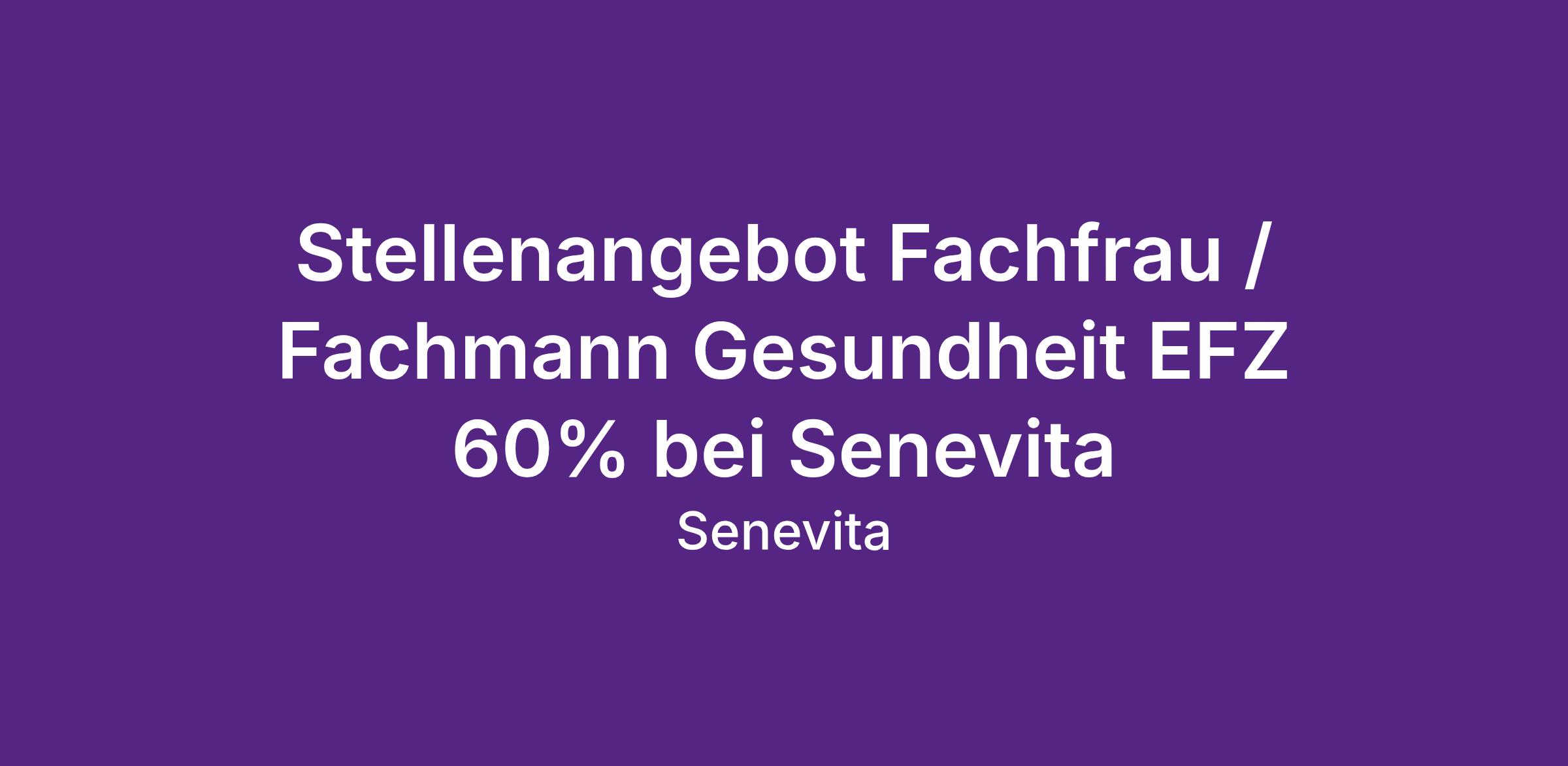Für die Senevita Bümpliz in Bern suchen wir per sofort oder nach Vereinbarung eine achtsame und teamorientierte Person als