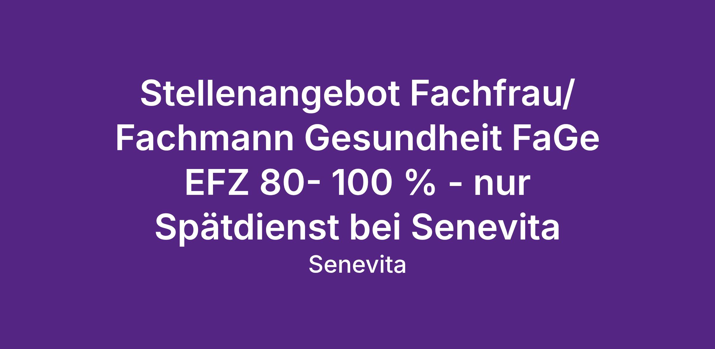 Für die Senevita in Burgdorf suchen wir per 01. Januar 2026 eine achtsame und teamorientierte Person als