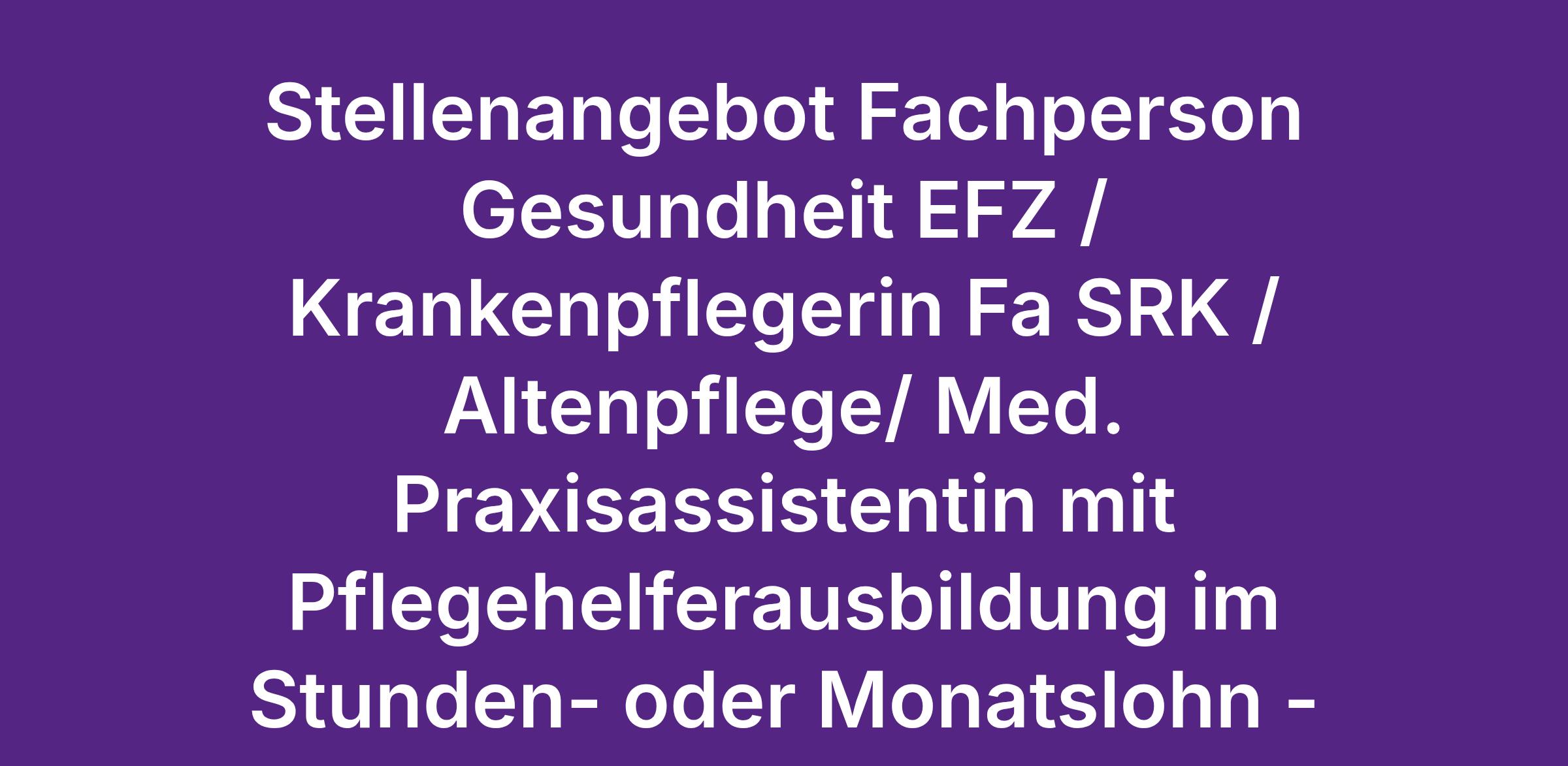 Fachperson Gesundheit EFZ / Krankenpflegerin Fa SRK / Altenpflege/ Med. Praxisassistentin mit Pflegehelferausbildung im Stunden- oder Monatslohn