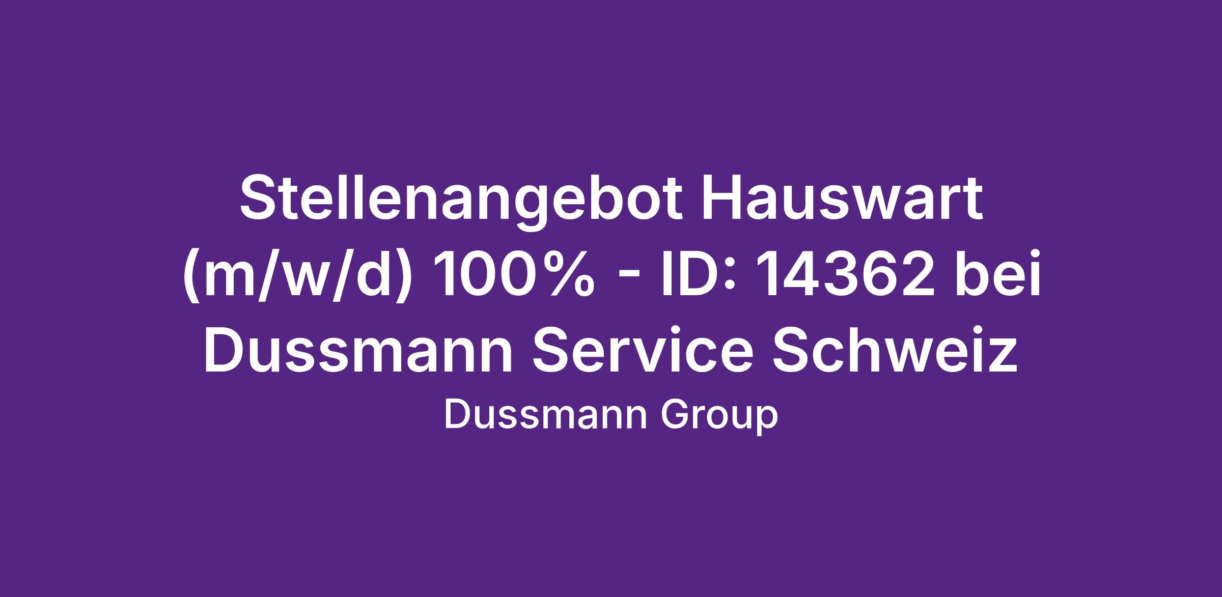 Stellenangebot Hauswart (m/w/d) 100% - ID: 14362 bei Dussmann Service Schweiz