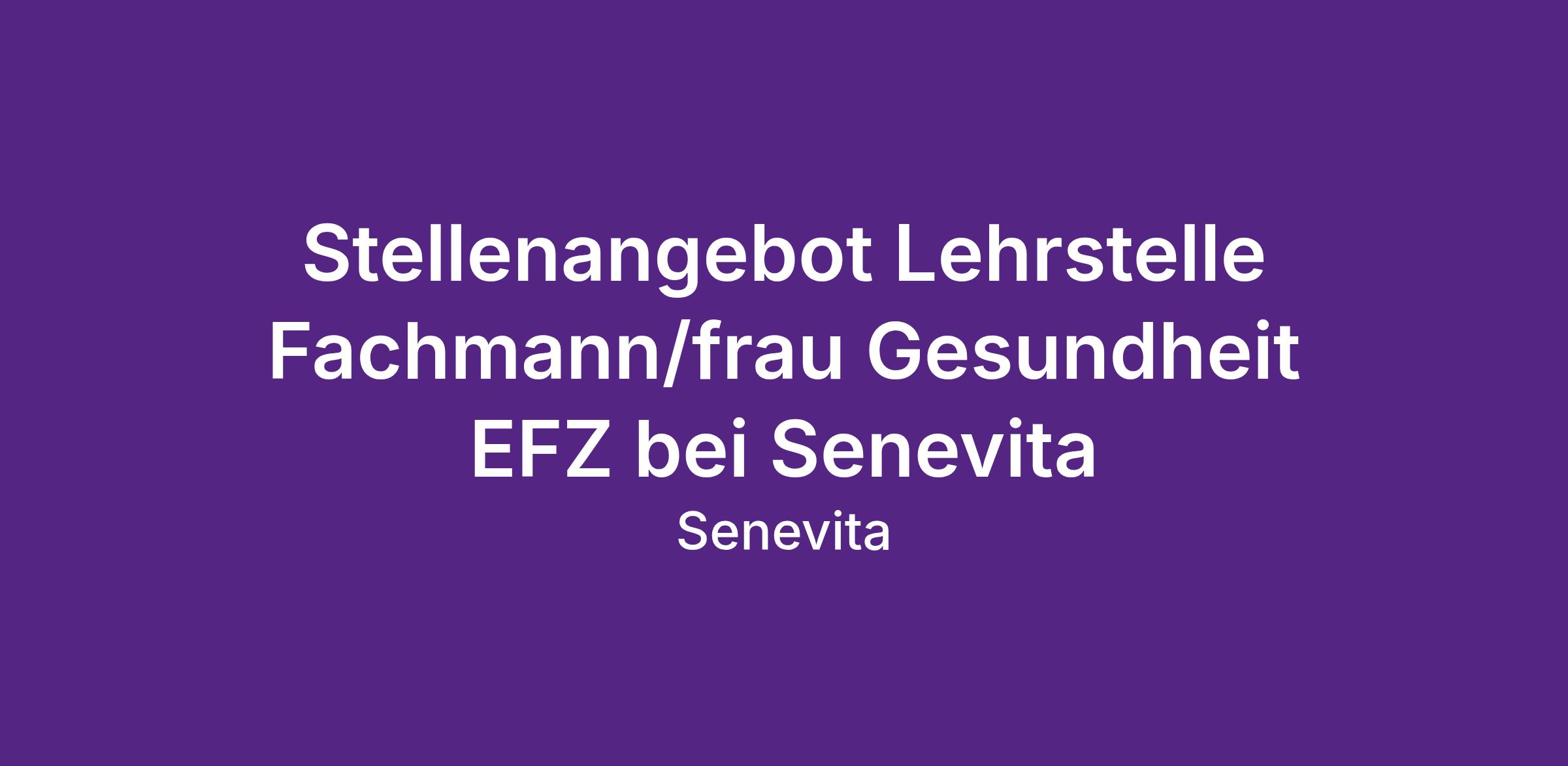 Stellenangebot Lehrstelle Fachmann/frau Gesundheit EFZ bei Senevita