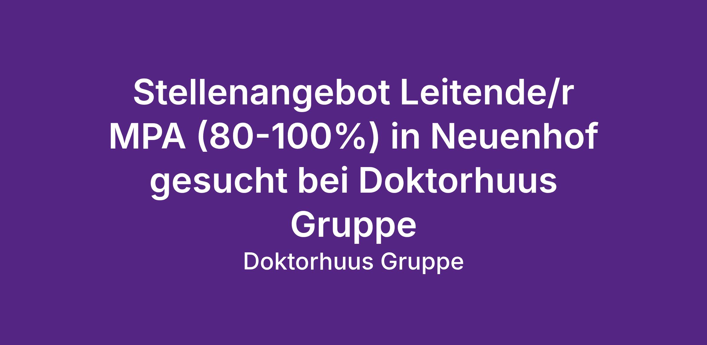 Sie suchen eine echte Herausforderung und möchten Verantwortung für ein Team in unserer Doktorhuus Praxis in Neuenhof übernehen?