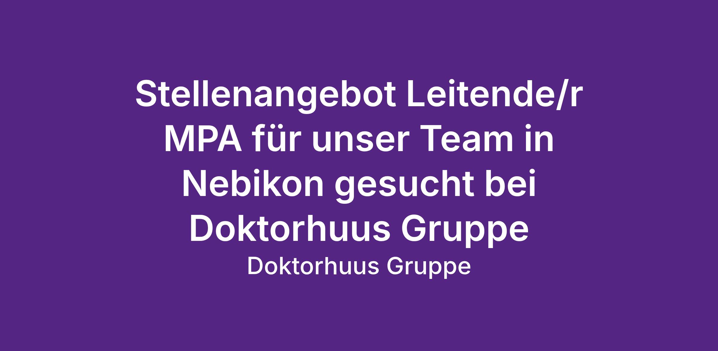 In unserer Praxis in Nebikon, Luzern, suchen wir eine/n engagierte/n Leitende/n MPA, die/der mit Herz, Struktur und Freude an Führung den Praxisalltag gemeinsam mit dem MPA- und Ärzteteam weiterentwickelt.