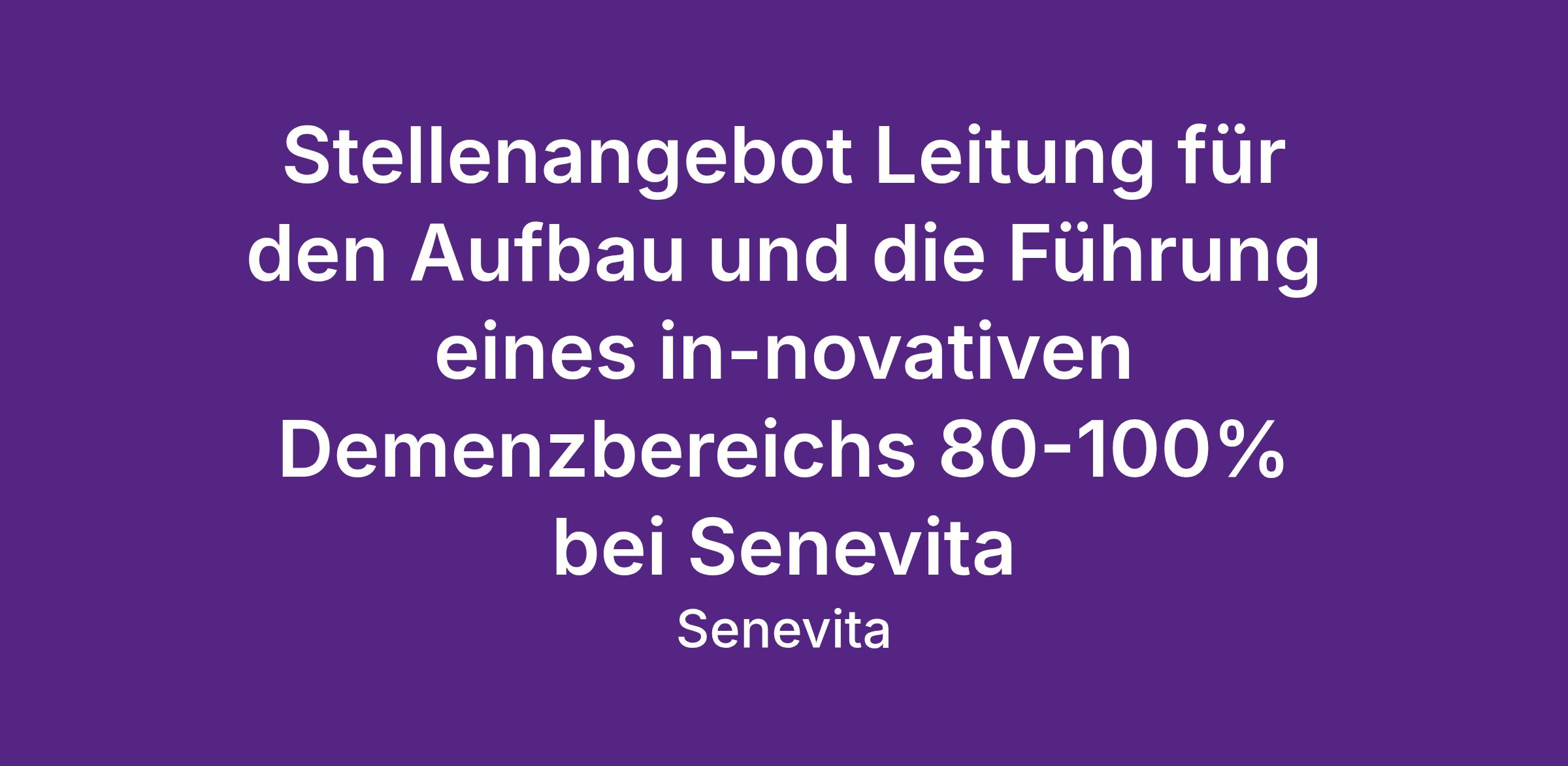 Leitung für den Aufbau und die Führung eines innovativen Demenzbereichs 80-100%