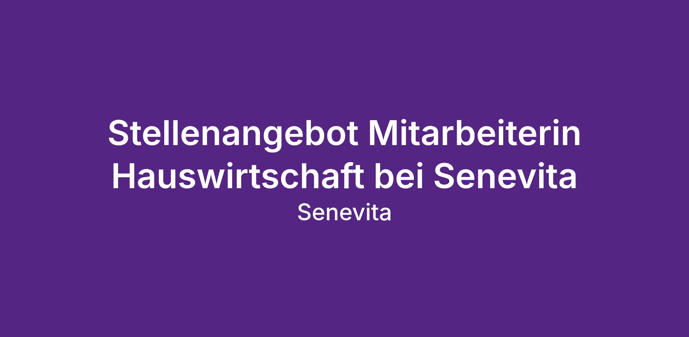 Senevita ist die grösste integrierte Anbieterin von Dienstleistungen im Alter und beschäftigt rund 4'000 Mitarbeitende. Ambulante und stationäre Angebote gehen nahtlos ineinander über. Während die Senevita Standorte für selbstständiges betreutes Wohnen und umfassende Pflege stehen, ist Senevita Casa die schweizweit führende Anbieterin privater Spitex-Leistungen.