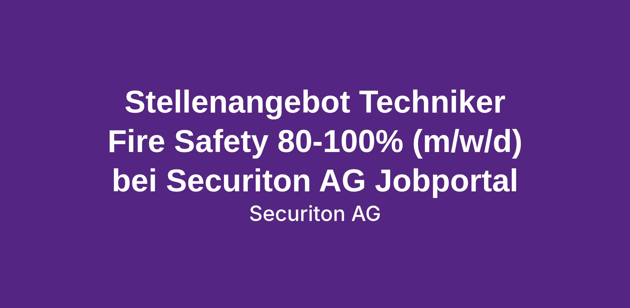 Stellenangebot Techniker Fire Safety 80-100% (m/w/d) bei Securiton AG Jobportal
