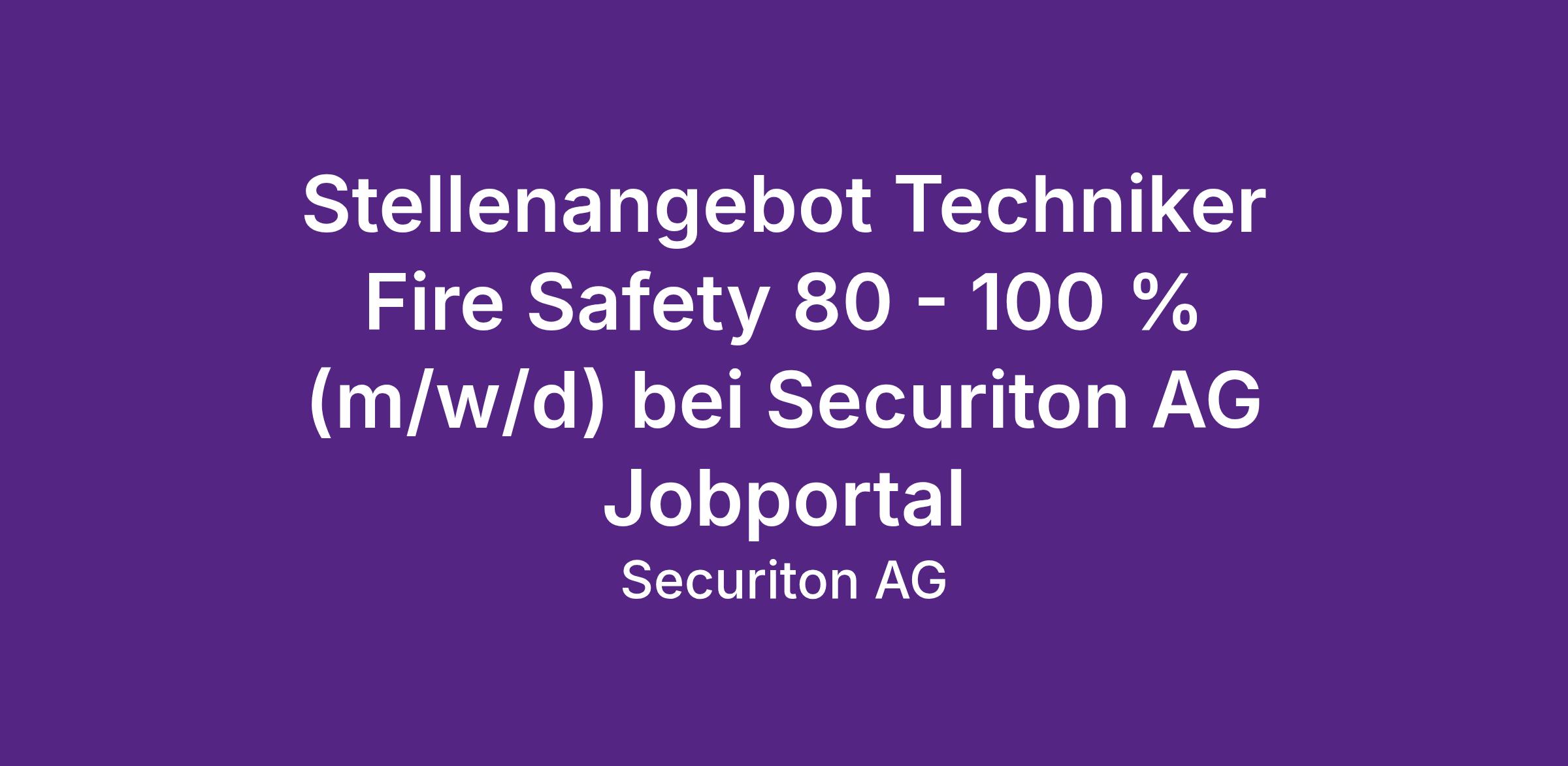 Stellenangebot Techniker Fire Safety 80 - 100 % (m/w/d) bei Securiton AG Jobportal