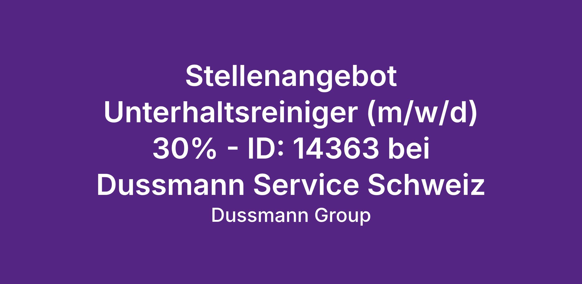 Stellenangebot Unterhaltsreiniger (m/w/d) 30% - ID: 14363 bei Dussmann Service Schweiz