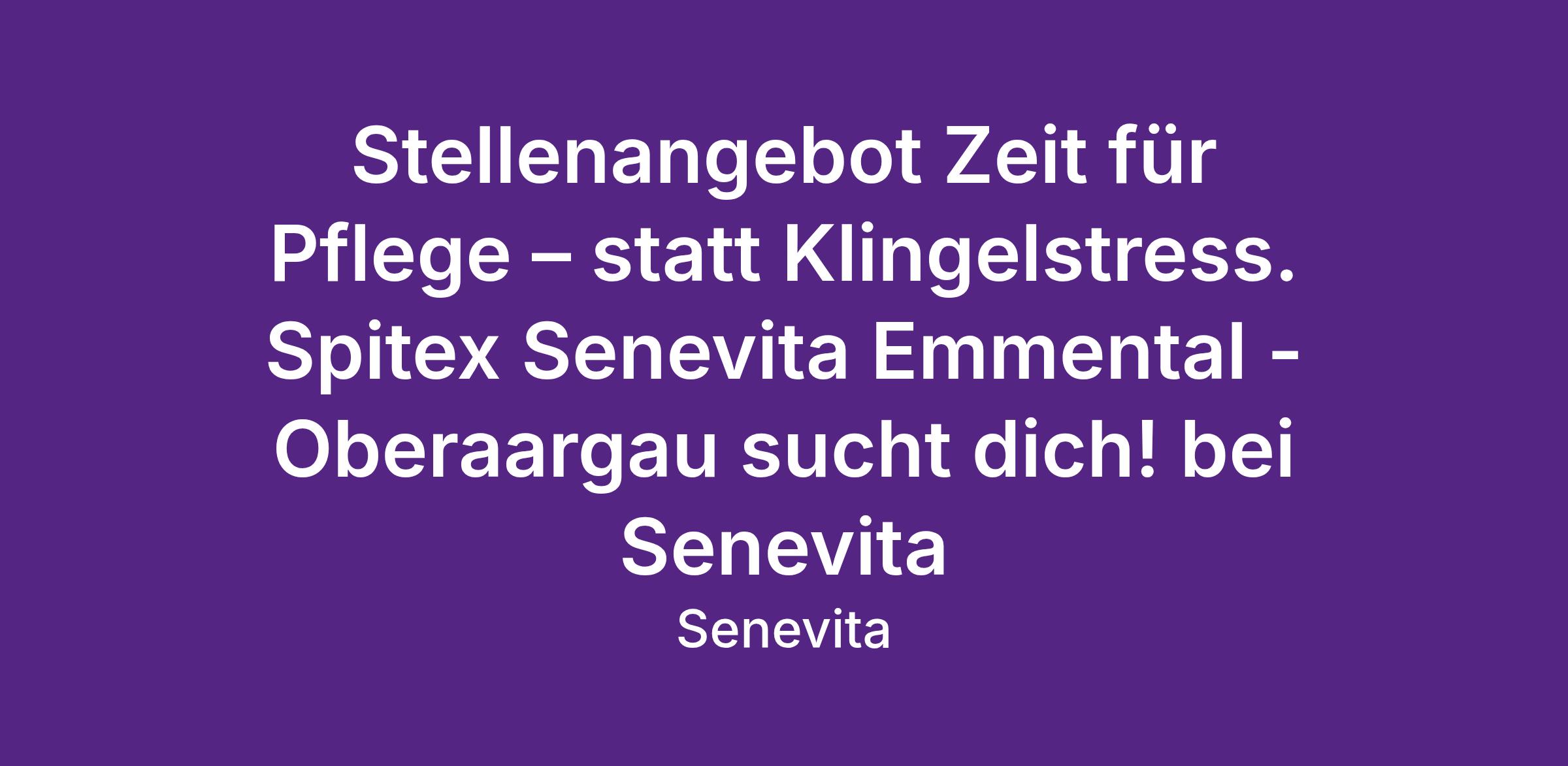 Stellenangebot Zeit für Pflege – statt Klingelstress. Spitex Senevita Emmental - Oberaargau sucht dich! bei Senevita