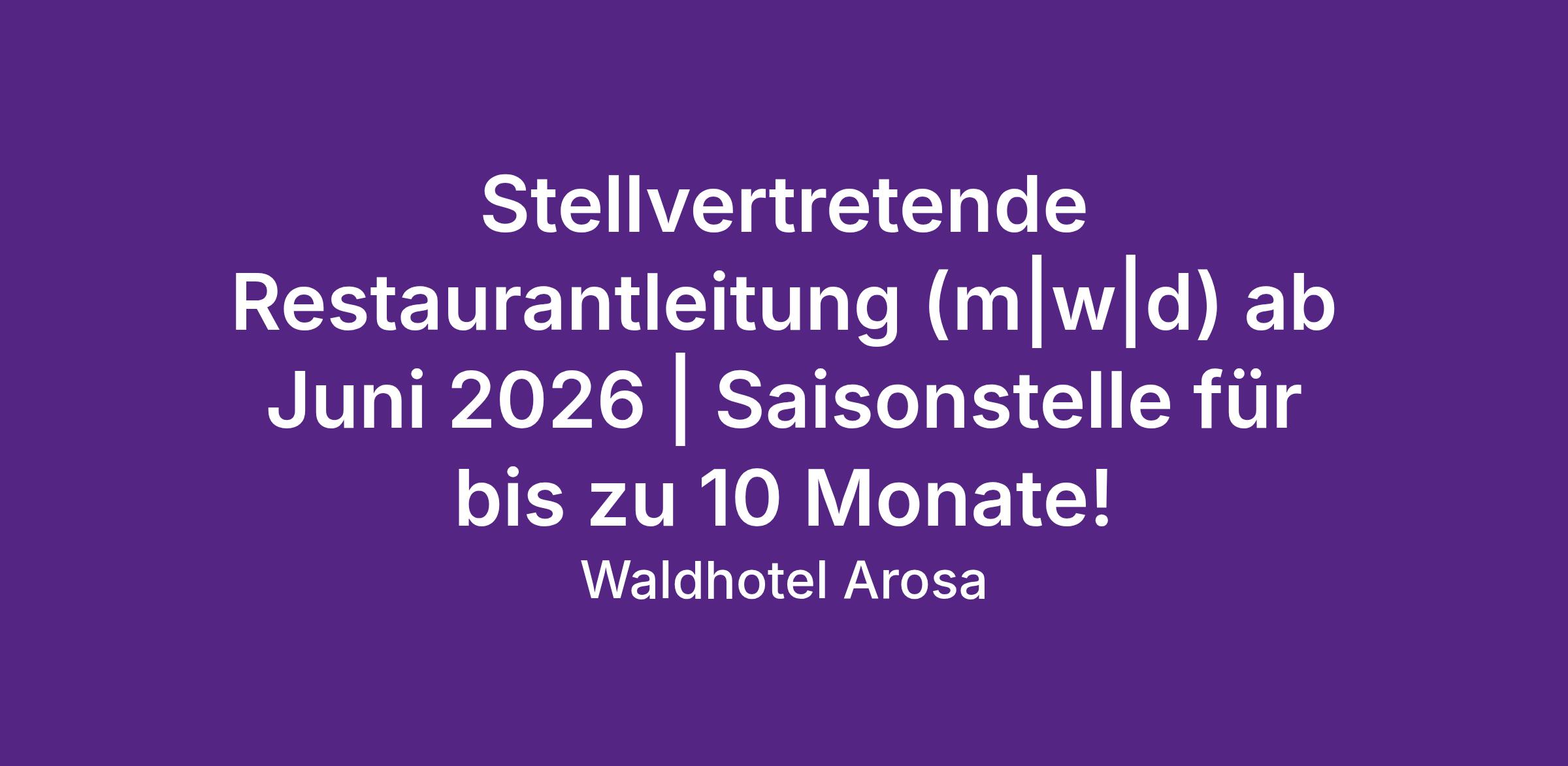 Zur Ergänzung unseres F&B-Teams, suchen wir nach Vereinbarung eine erfahrene & passionierte Stellvertretende Restaurantleitung.