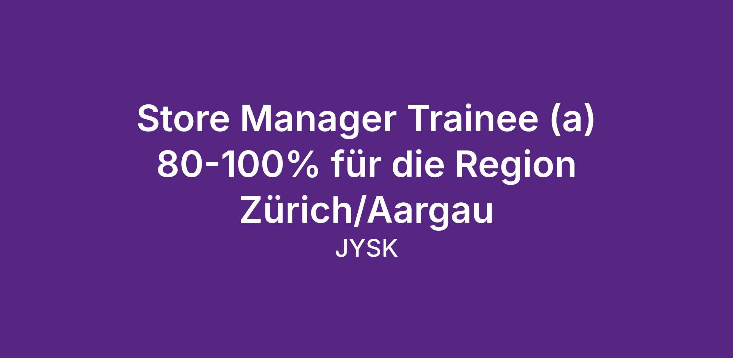 Store Manager Trainee (a) 80-100% für die Region Zürich/Aargau