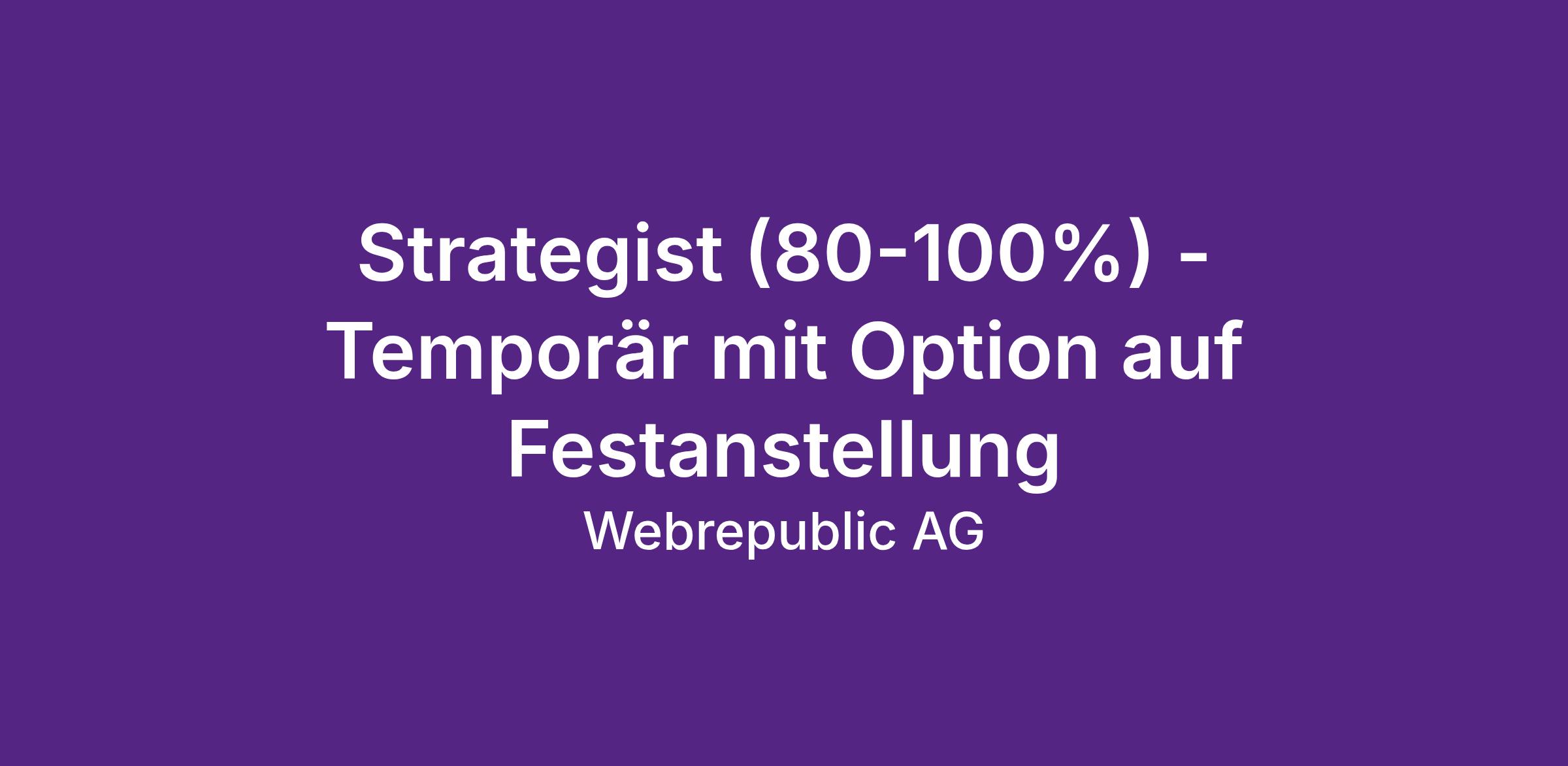 Strategist (80-100%) - Temporär mit Option auf Festanstellung