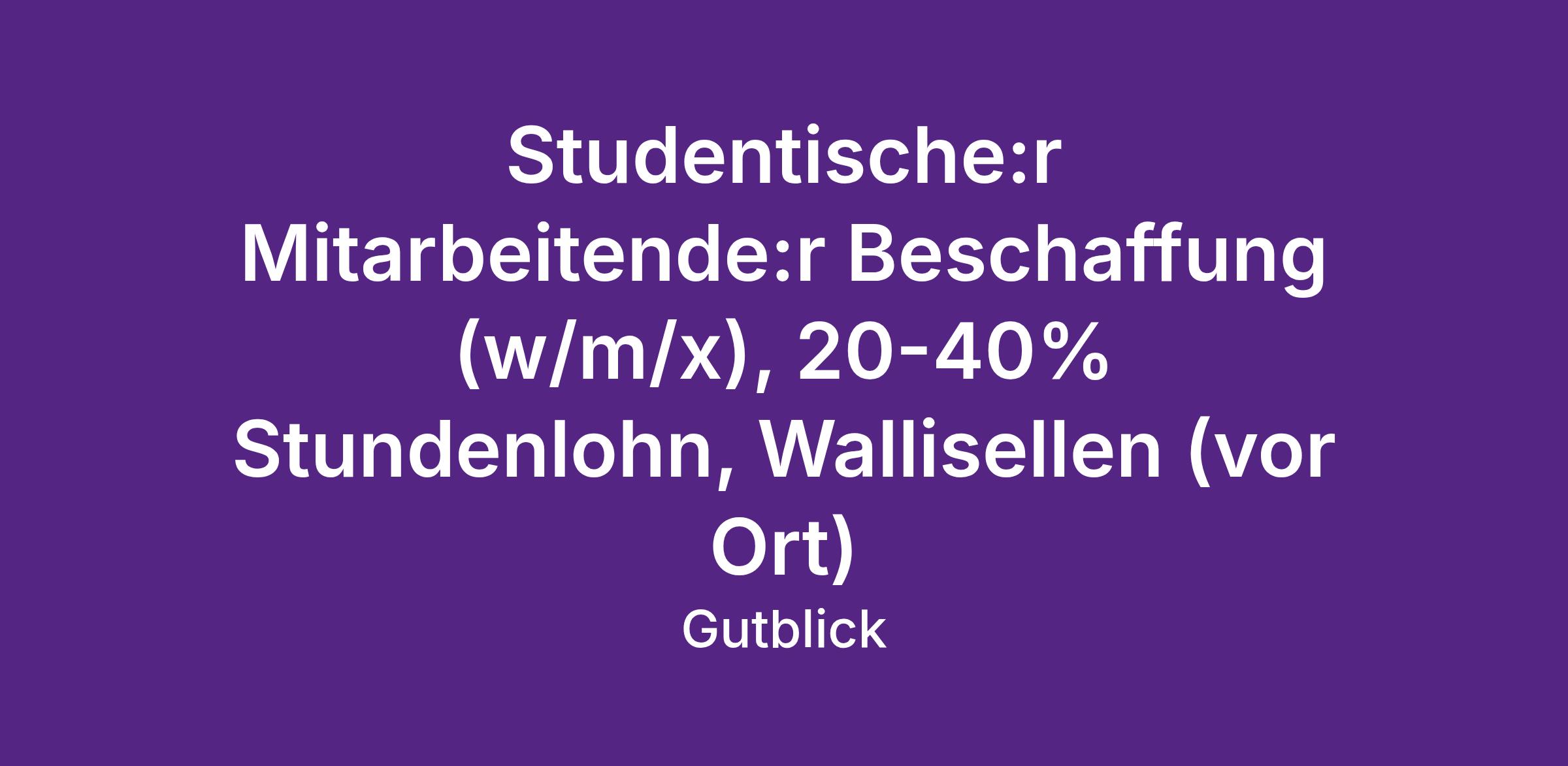 Für unsere Büroräumlickeiten in Wallisellen suchen wir per sofort oder nach Vereinbarung Unterstützung für unser Team. Wir sind ein dynamisches Team und suchen eine aufgestellte Persönlichkeit, welche viel Eigenverantwortung und Motivation mitbringt.