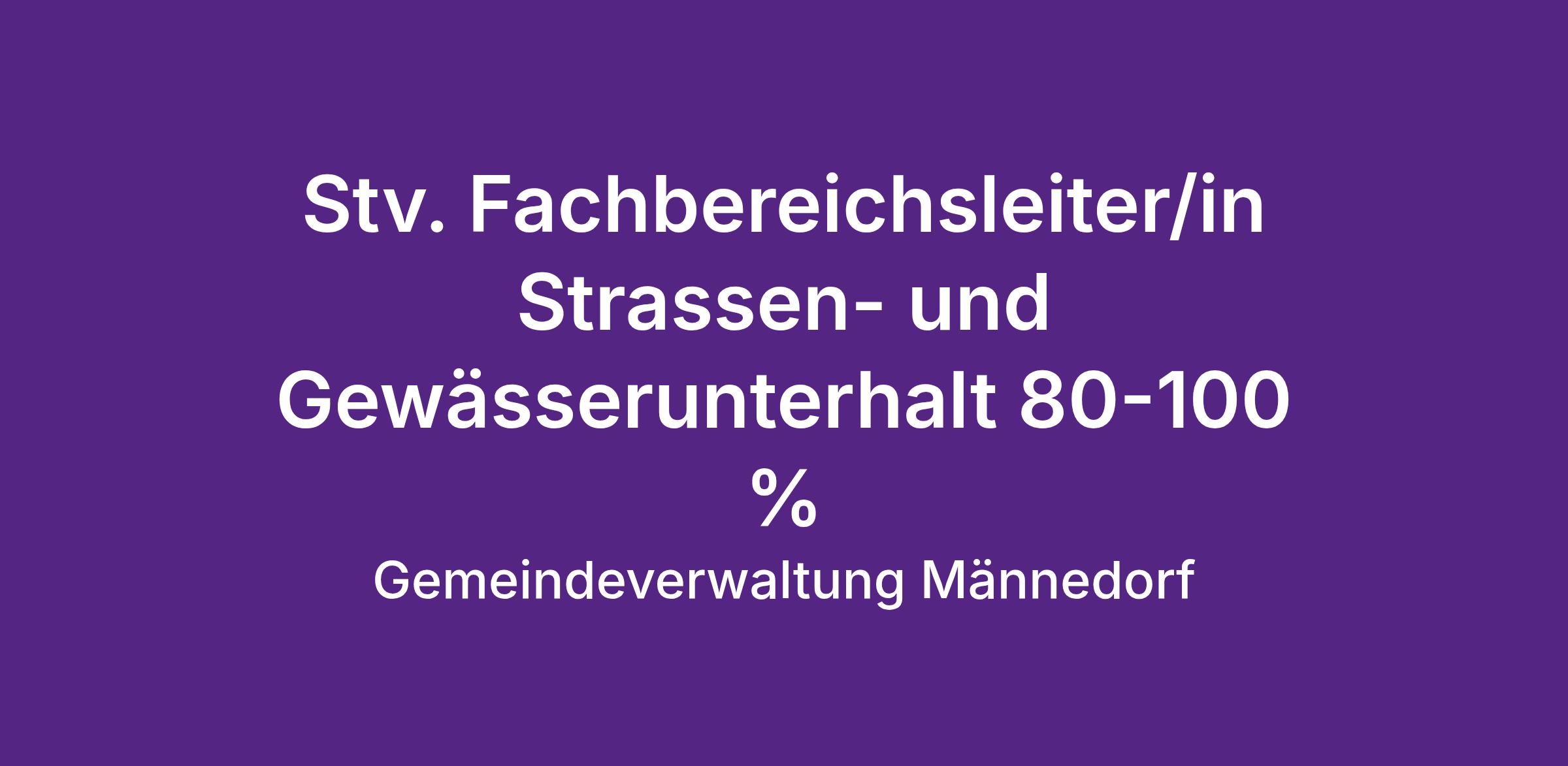 Stv. Fachbereichsleiter/in Strassen- und Gewässerunterhalt 80-100 %