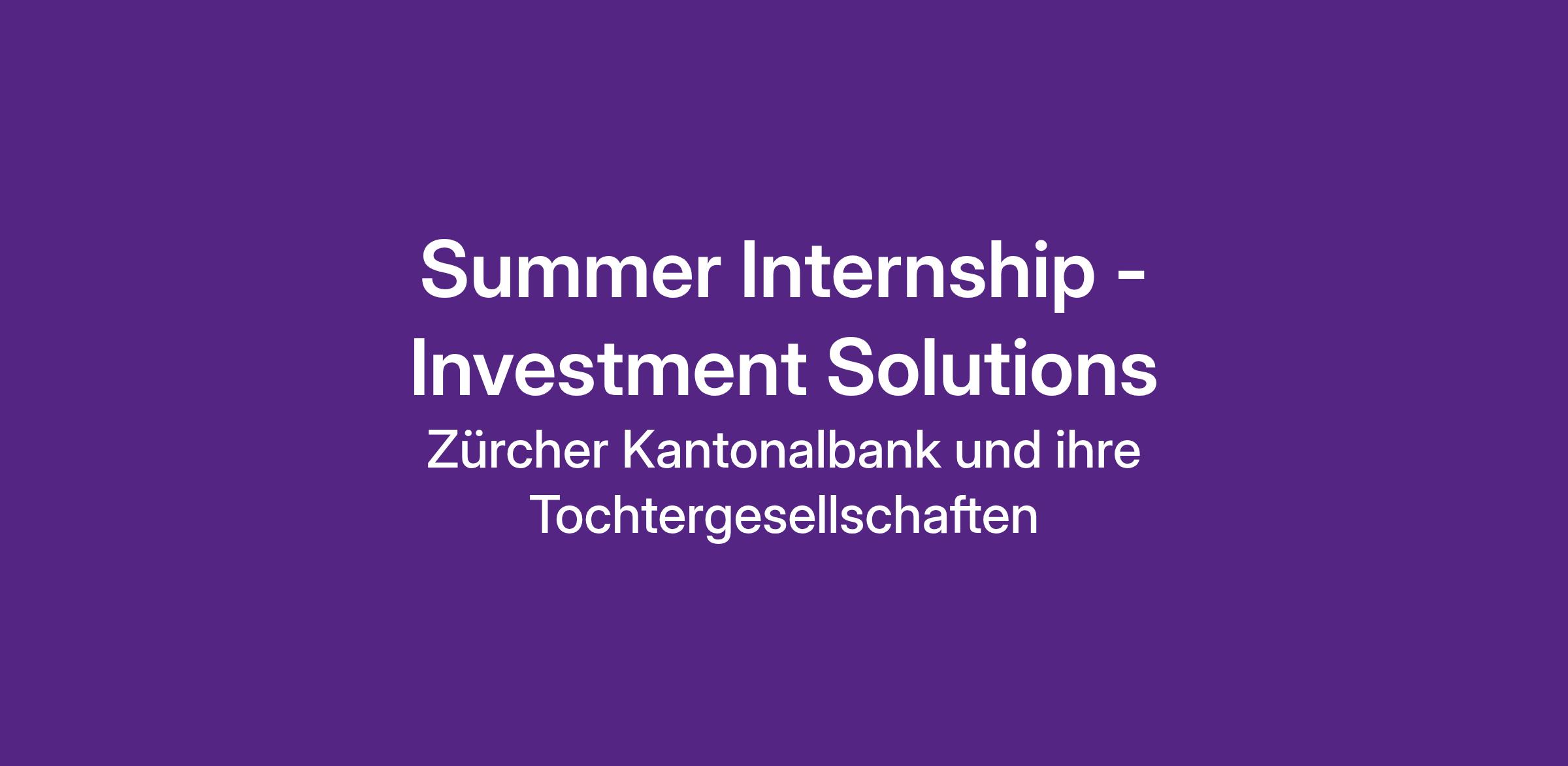 Bist du auf der Suche nach einer einmaligen Chance, in die Berufswelt einzutauchen? Entdecke deine Möglichkeiten bei einer der grössten Ausbildungsstätten des Kantons Zürich und bewirb dich für unser Summer Internship. Mit dieser Bewerbung wird dein Summer Internship im Bereich Investment Solutions ein Volltreffer!
