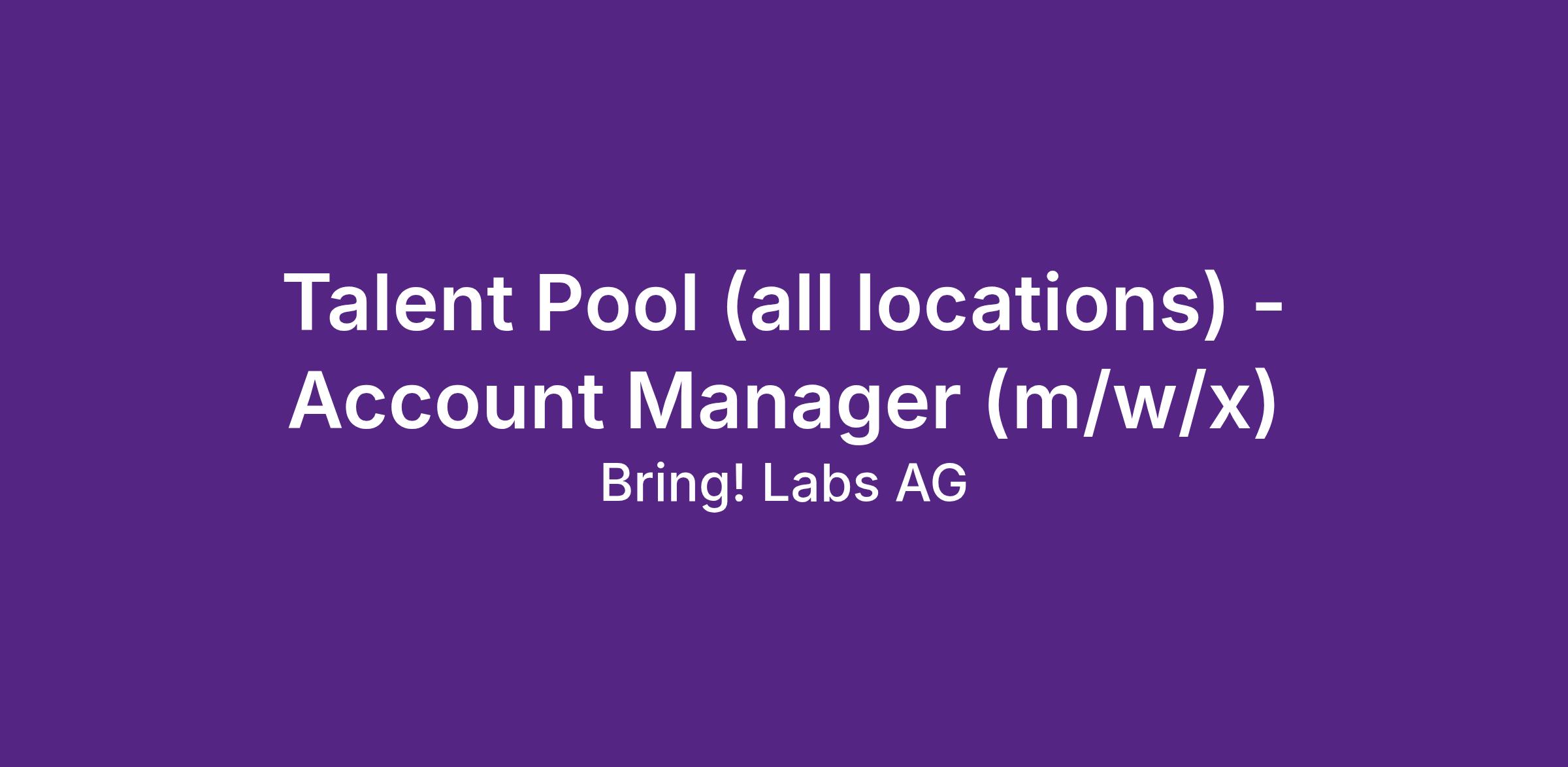 👉 Damit wir unsere Reise erfolgreich fortsetzen können, möchten wir mit motivierten Sales- und Account-Management-Profis in Kontakt bleiben. Aktuell haben wir keine offene Stelle als Account Manager, aber wir sind immer auf der Suche nach motivierten Talenten, die uns künftig verstärken wollen. Deshalb bauen wir einen Talent Pool für Account Manager (für Zürich, Basel und Berlin) auf. Mit deiner Registrierung im Talent Pool bleibst du mit uns in Kontakt - sollte es grundsätzlich vom Profil her passen, organisieren wir einen ersten Call, um dich besser kennen zu lernen, und melden uns dann wieder bei dir, sobald eine passende Vakanz entsteht.