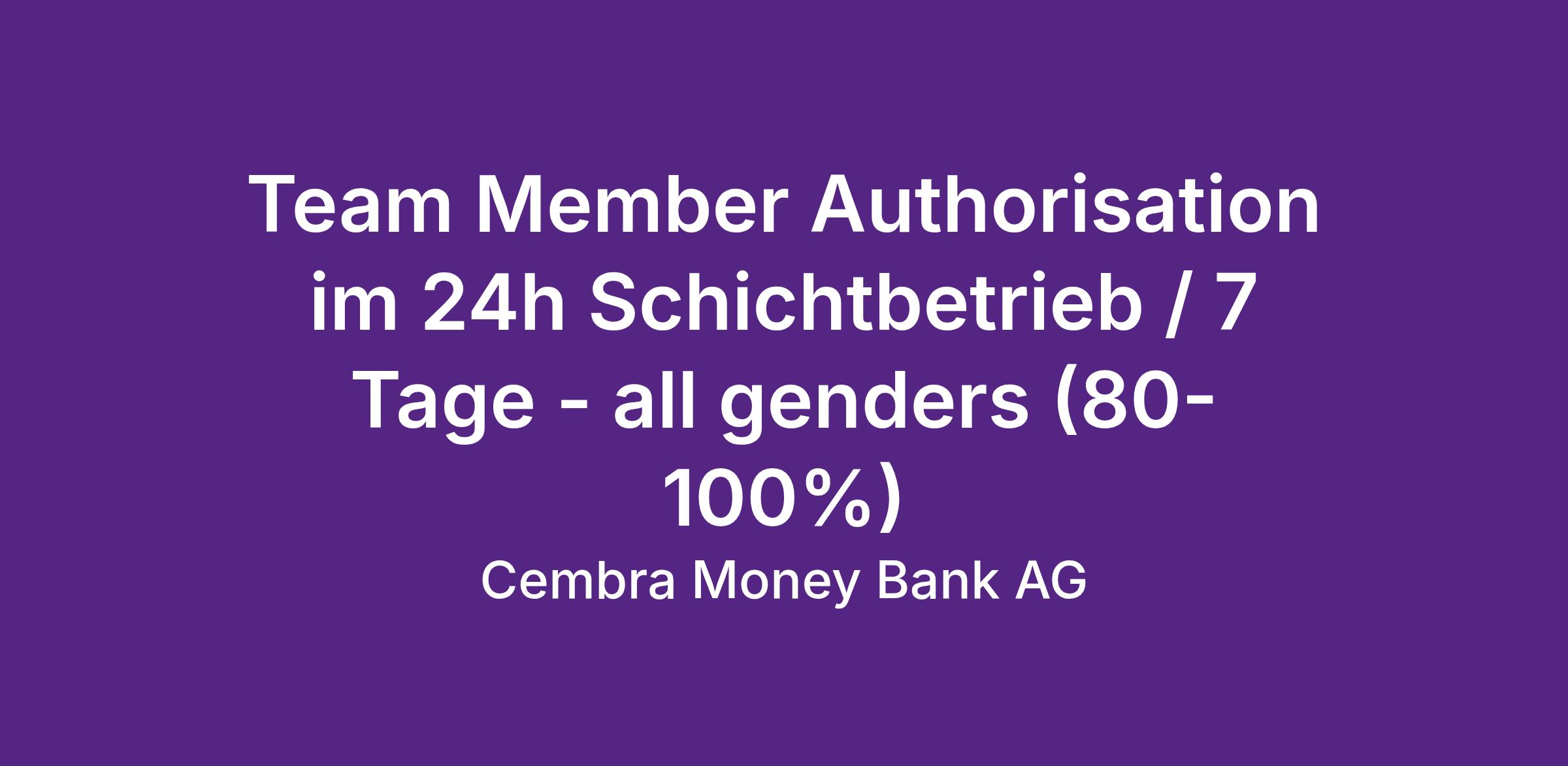 Team Member Authorisation im 24h Schichtbetrieb / 7 Tage - all genders (80-100%)