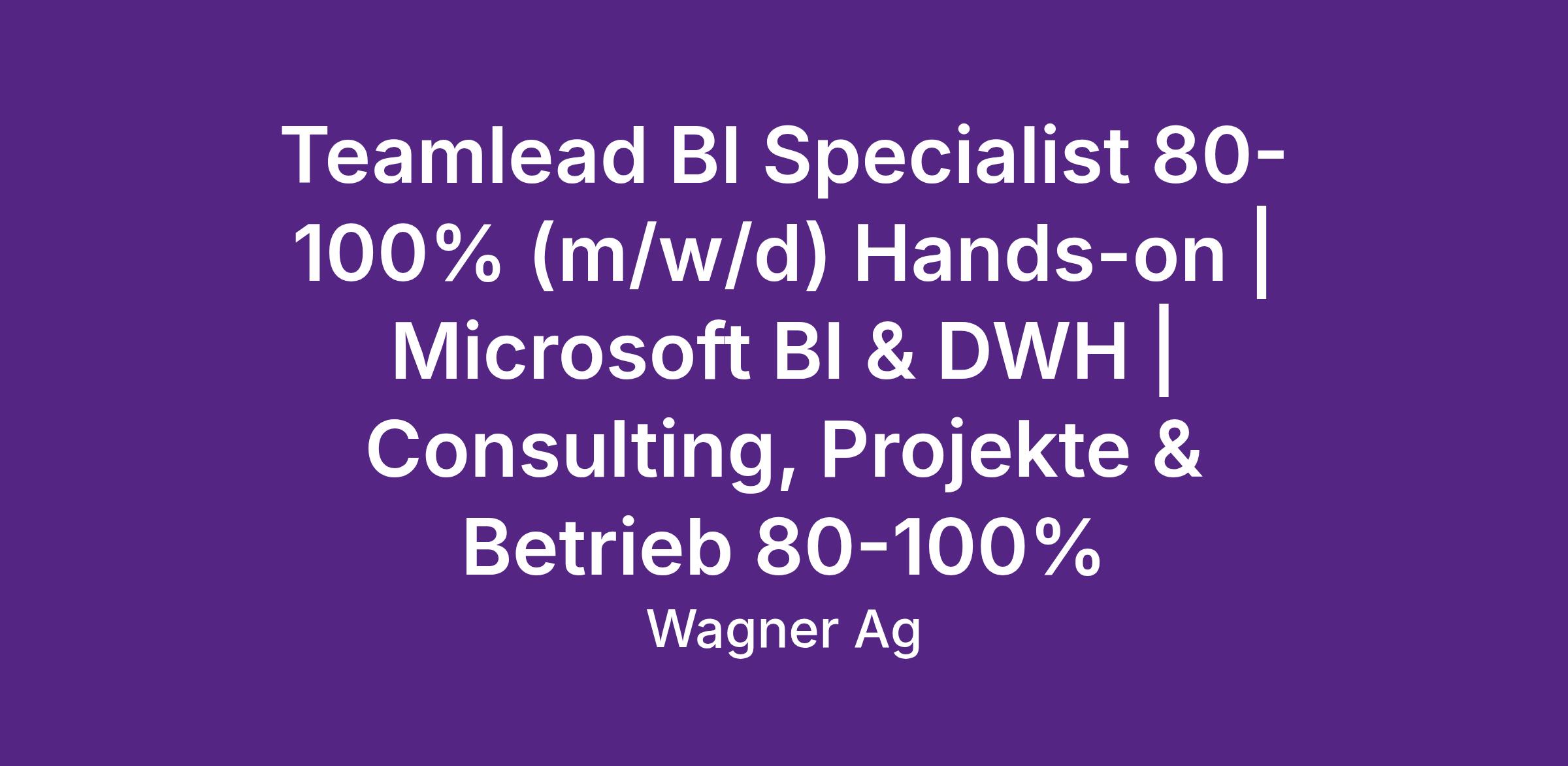 Als Teamlead BI Specialist übernimmst du die Führung eines kleinen BI-Teams (insgesamt 3 Personen), das Kunden in den Bereichen Consulting, Projektumsetzung und Betrieb unterstützt. Du arbeitest selbst aktiv an Lösungen mit, entwickelst das Team technologisch weiter und prägst unsere BI- und DWH-Architekturen nachhaltig.