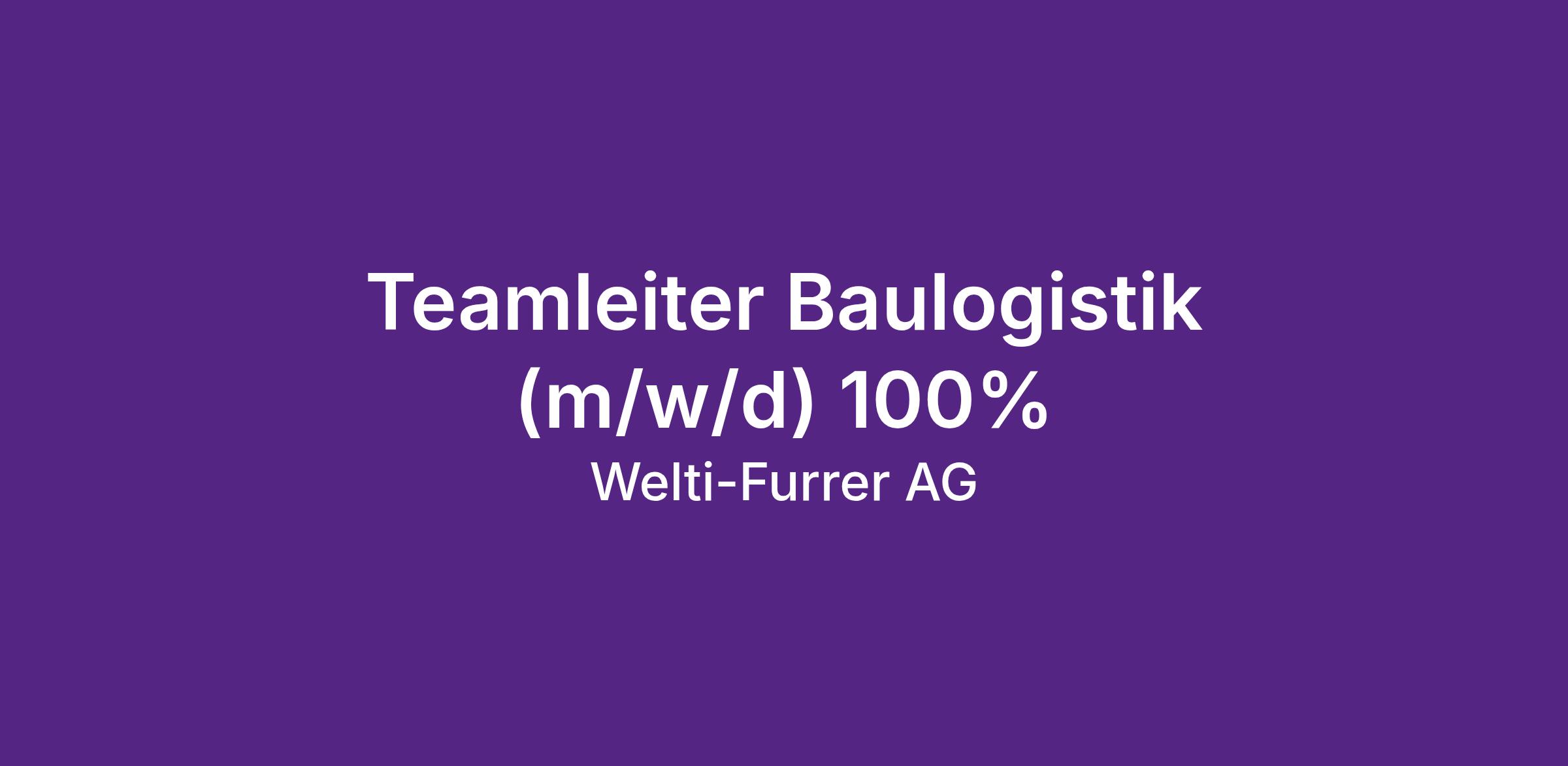 Teamleiter Baulogistik (m/w/d), 100%