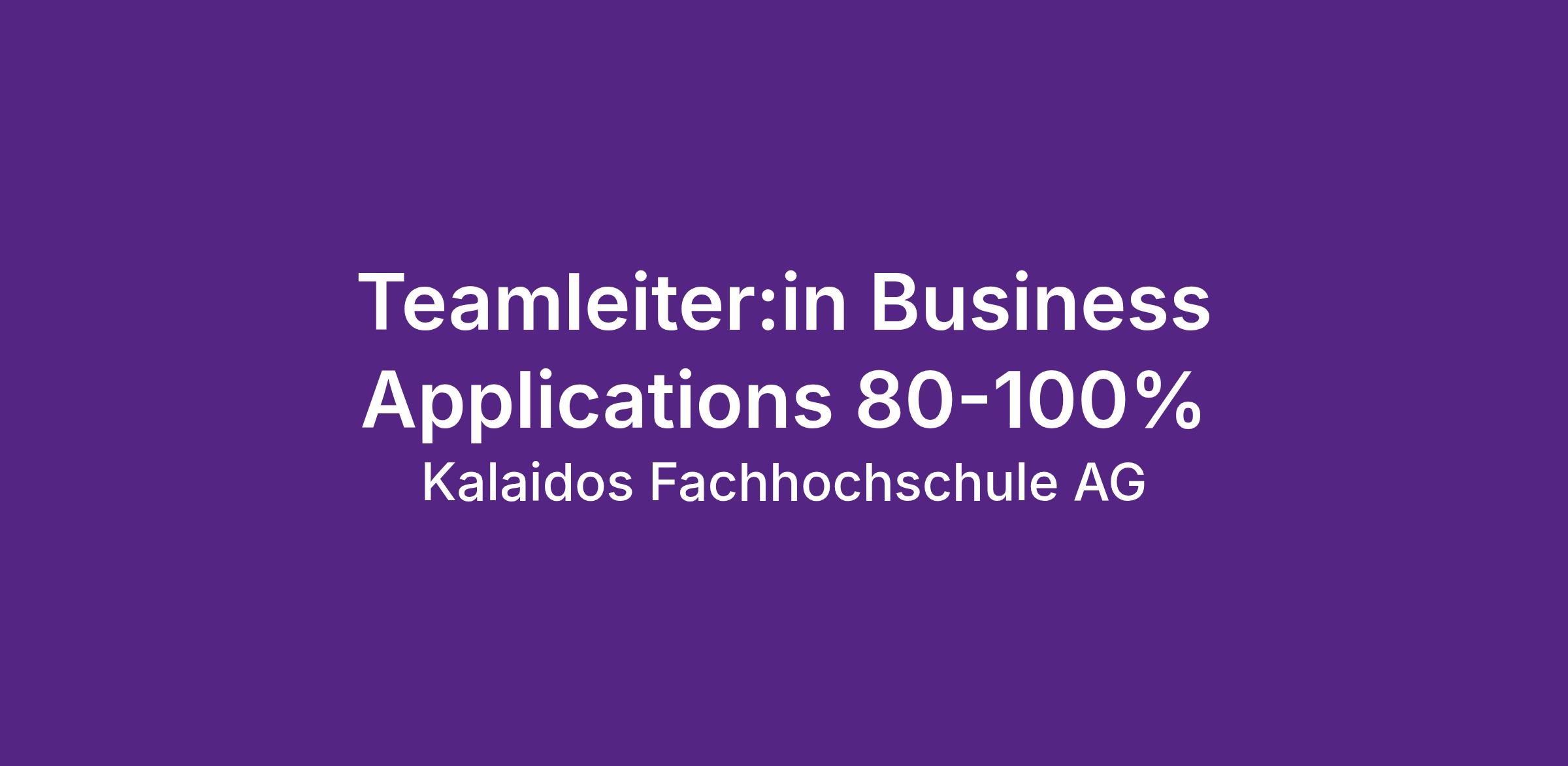Für unsere Abteilung ICT und Infrastruktur suchen wir eine:n Teamleiter:in Business Applications 80 - 100 %.
