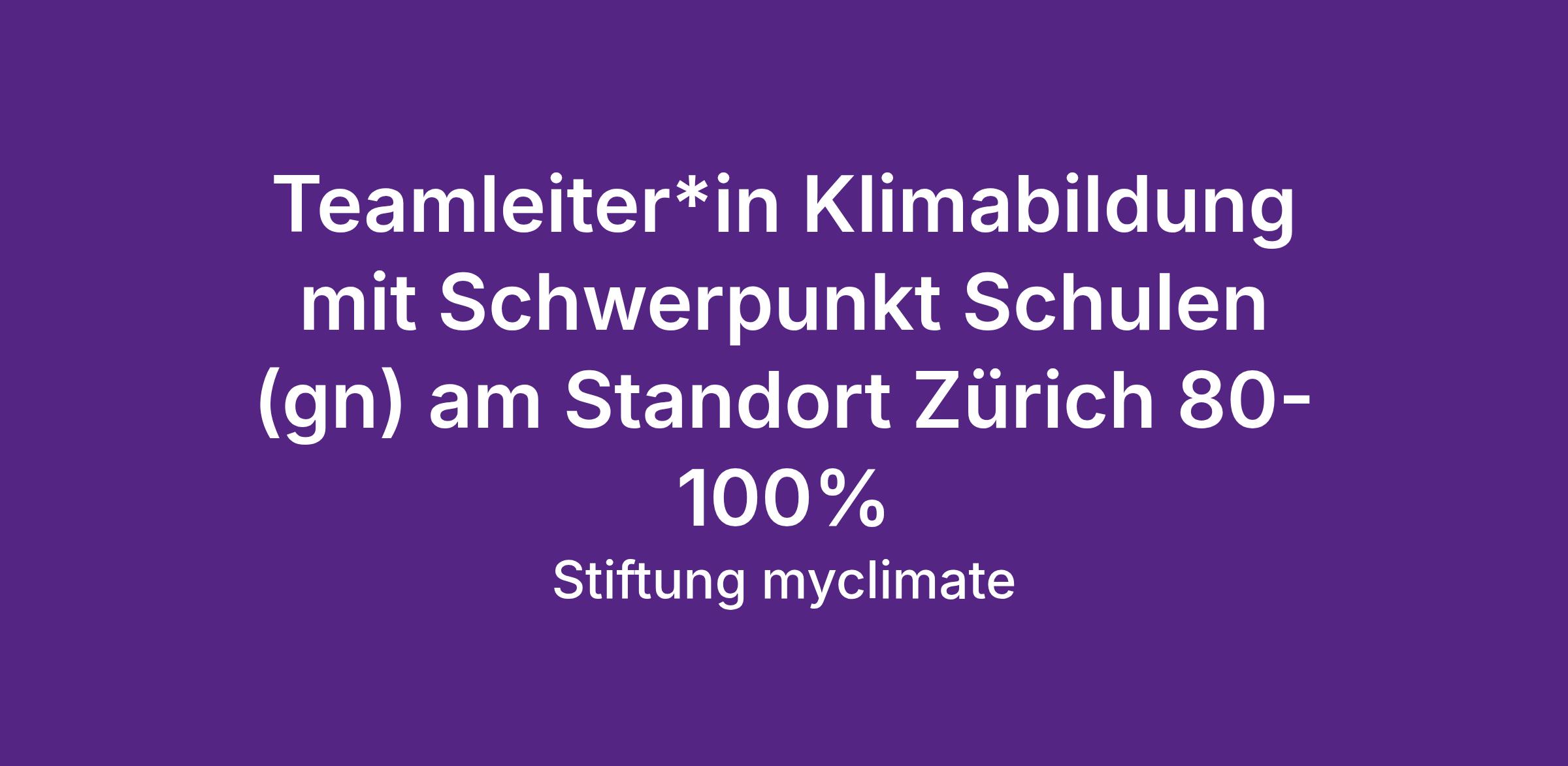 Teamleiter*in Klimabildung mit Schwerpunkt Schulen (gn) 80-100% am Standort Zürich