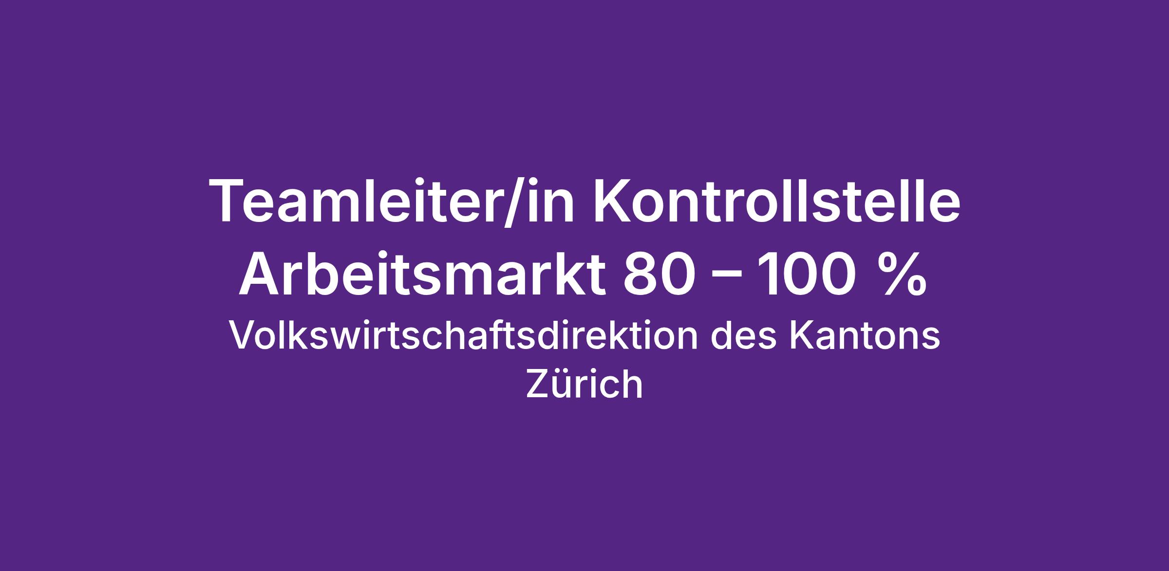 Teamleiter/in Kontrollstelle Arbeitsmarkt 80 – 100 %