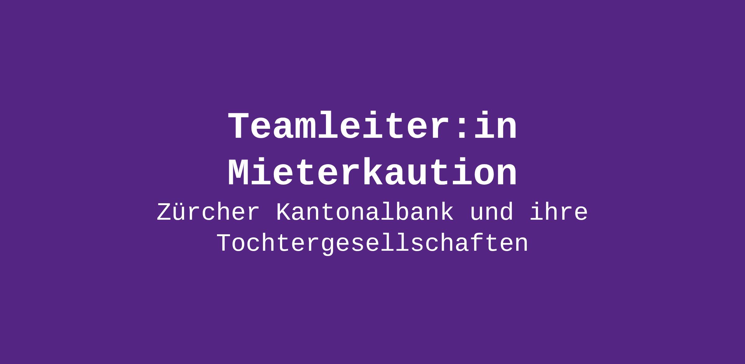 - Du bist nicht nur für die Abwicklung aller Mieterkautionen der Zürcher Kantonalbank verantwortlich, sondern gestaltest aktiv die Weiterentwicklung der Prozesse und Strukturen in deinem Bereich