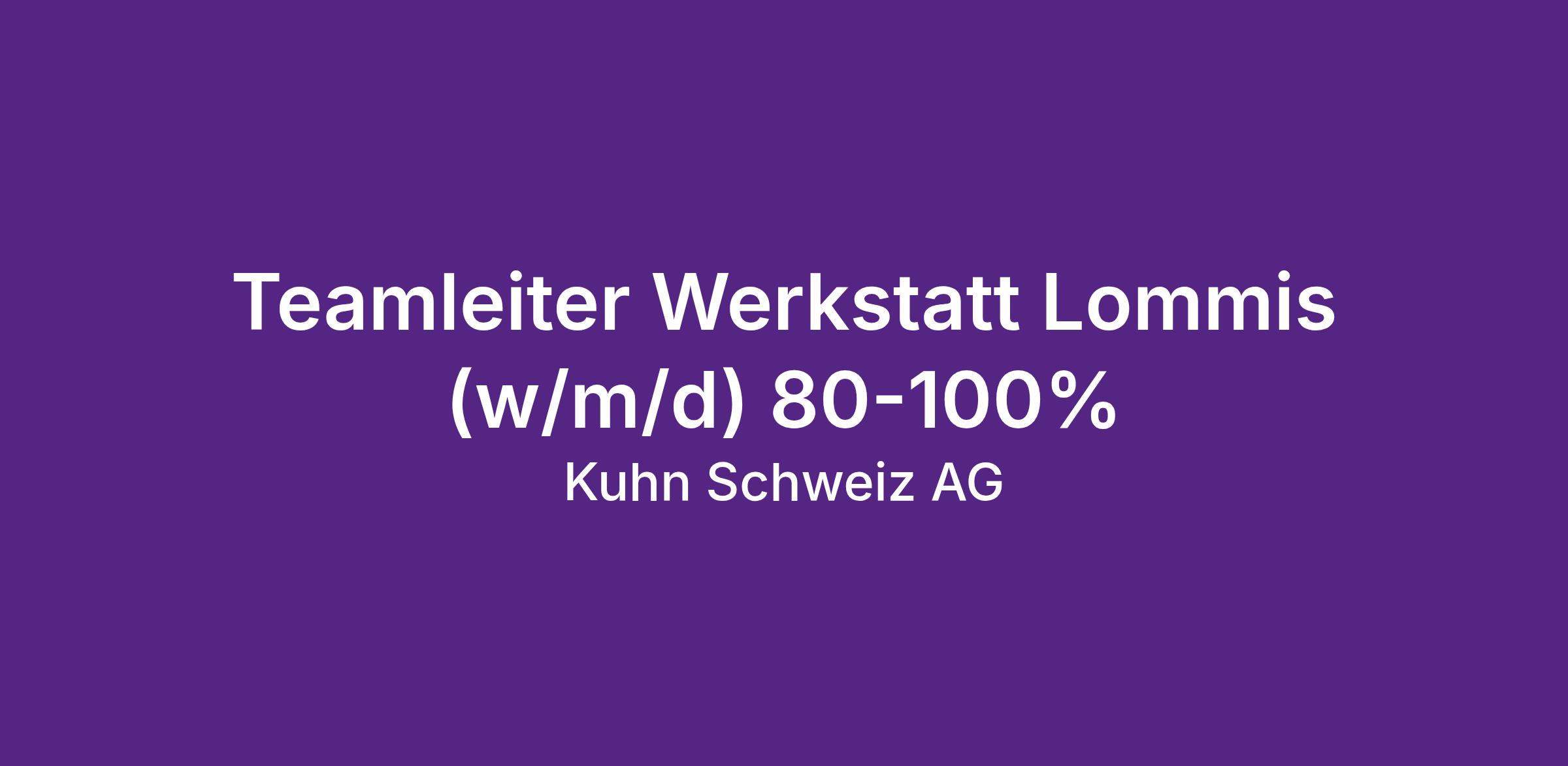 Für unseren Standort in Lommis suchen wir eine anpackenden Persönlichkeit mit gutem Teamspirit, die Verantwortung für den reibungslosen Ablauf in der Werkstatt übernimmt.