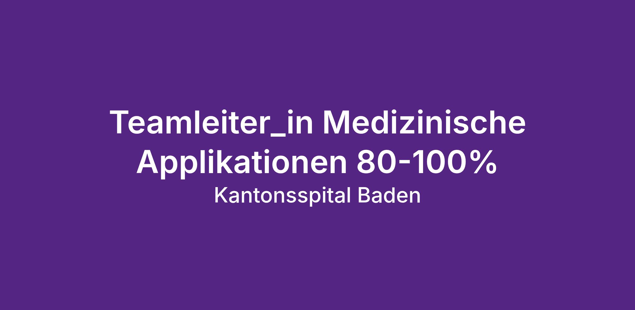 Zur Verstärkung unseres Bereichs Applications, Data & AI CoE suchen wir per 1. Juni 2026 oder nach Vereinbarung eine engagierte Persönlichkeit als Teamleiter/in Medizinische Applikationen. In dieser Funktion stellen Sie gemeinsam mit Ihrem Team den stabilen Betrieb sowie die Weiterentwicklung zentraler medizinischer Applikationen sicher und tragen wesentlich dazu bei, unsere klinischen Systeme optimal auf die Bedürfnisse der Fachbereiche auszurichten.