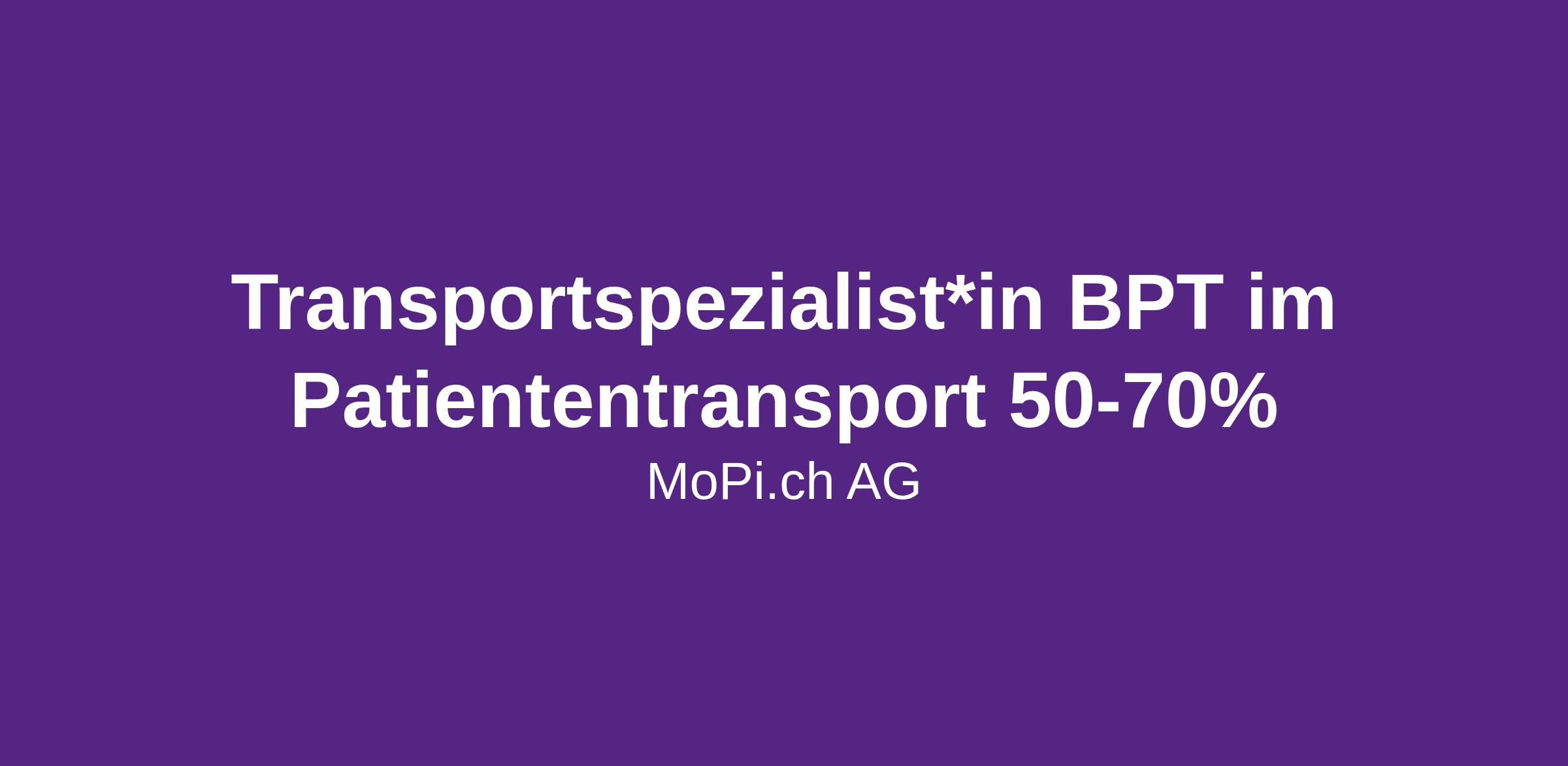 Wir suchen per sofort oder nach Vereinbarung einen engagierten Transportspezialisten BPT, der bereit ist, seine Fahrkompetenz mit einer verantwortungsvollen Aufgabe im Gesundheitswesen zu verbinden. Du verfügst über den Führerausweis der Kategorie B mit der Bewilligung zum berufsmässigen Personentransport (BPT 121)/ (Taxi 122) und möchtest beruflich weiterkommen? Ganz gleich, ob du bereits eine pflegerische Vorbildung mitbringst oder als motivierter Quereinsteiger bei uns durchstarten willst: Bei der MoPi.ch AG – der Schweizer Pionierin im Patiententransport – bieten wir dir die Chance, deine Leidenschaft fürs Fahren in ein professionelles Umfeld einzubringen. Dein Einsatz erfolgt dabei von Montag bis Freitag, jeweils von 08.00 bis ca. 12.00 Uhr.
