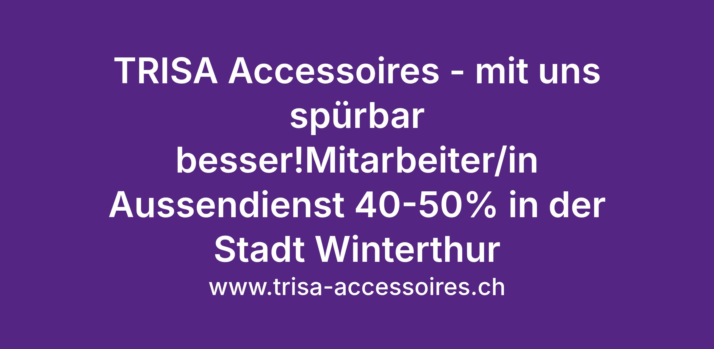 Die TRISA ACCESSOIRES AG - eine Tochtergesellschaft der TRISA Gruppe - ist ein führendes Handelsunternehmen in den Bereichen Beauty-Accessoires, Haar- und Modeschmuck sowie innovativer Partner renommierter Schweizer Detailhändler . Unsere Mitarbeitenden sind zugleich unsere Aktionärinnen und Aktionäre und somit als Mitinhabende am Erfolg des Unternehmens beteiligt.