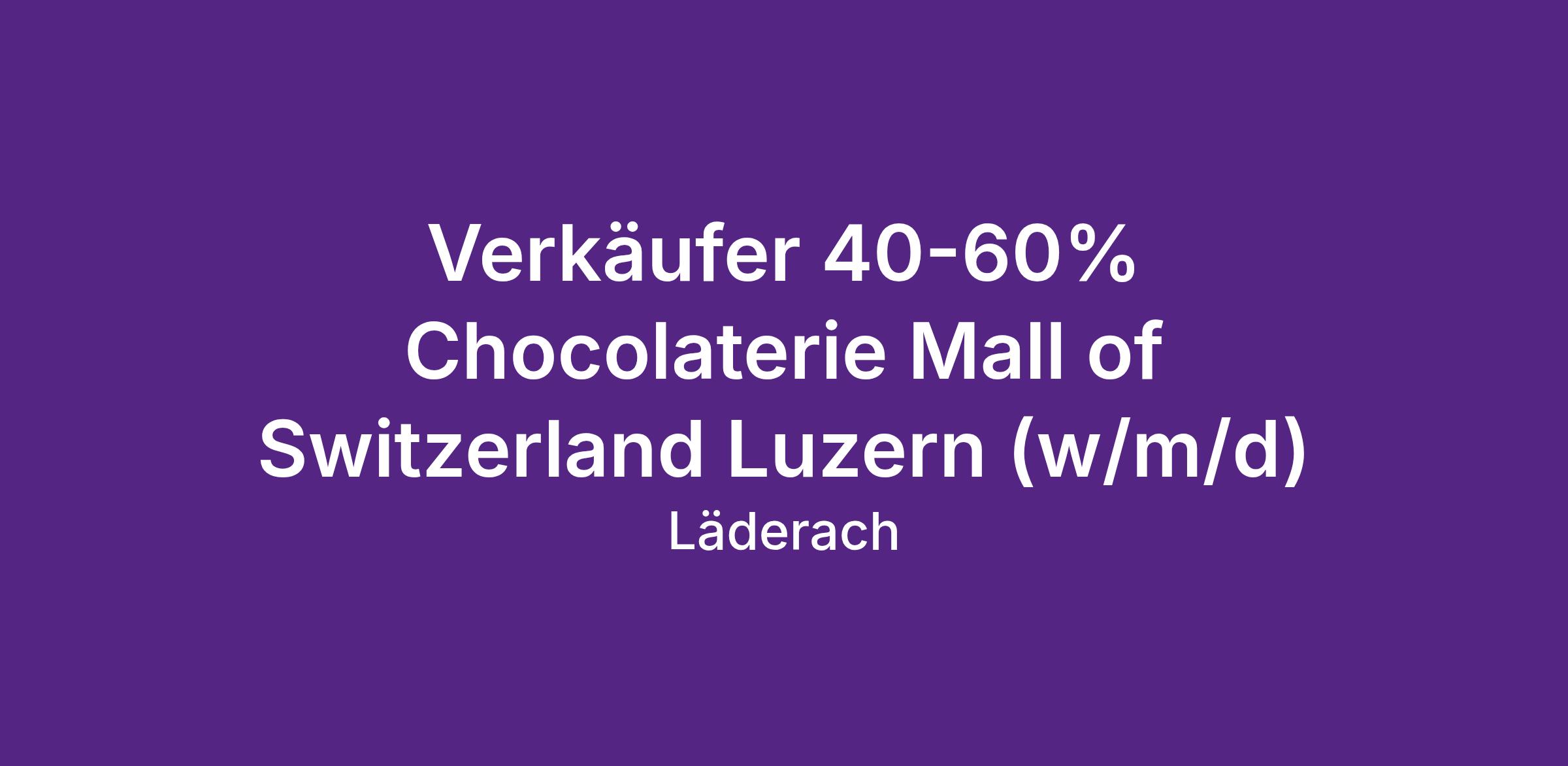 Verkäufer 40-60% Chocolaterie Mall of Switzerland Luzern (w/m/d)