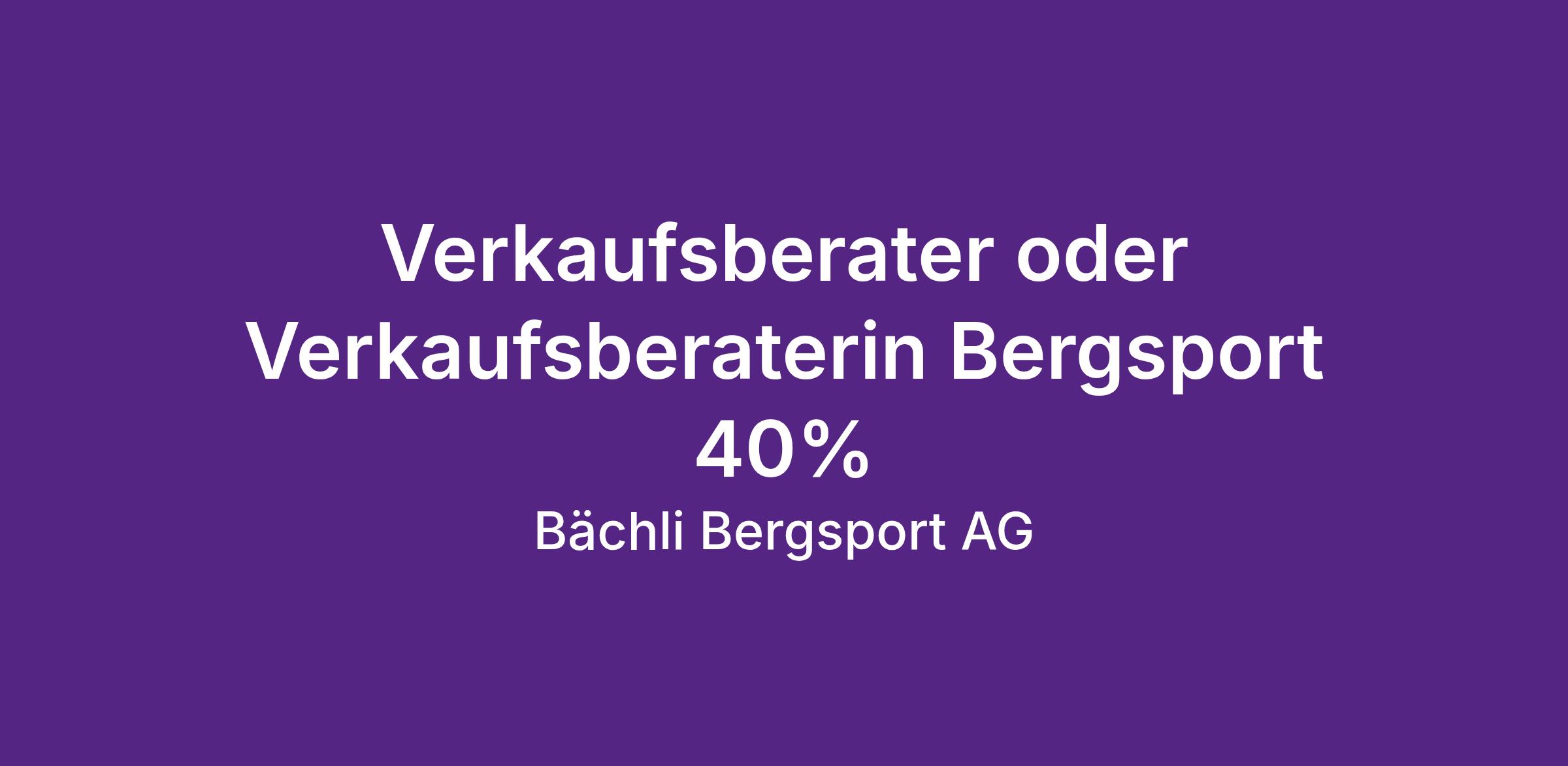 Bächli Bergsport ist das führende Schweizer Fachgeschäft für Bergsteigen, Klettern, Expeditionen, Wandern, Skitouren und Schneeschuhlaufen. In elf Verkaufsfilialen in der Deutschschweiz, zwei Verkaufsfilialen in der Westschweiz und einer Filiale im Tessin bieten wir unserer anspruchsvollen Kundschaft die besten Produkte und Marken, fachkundige Beratung und hochstehenden Service.