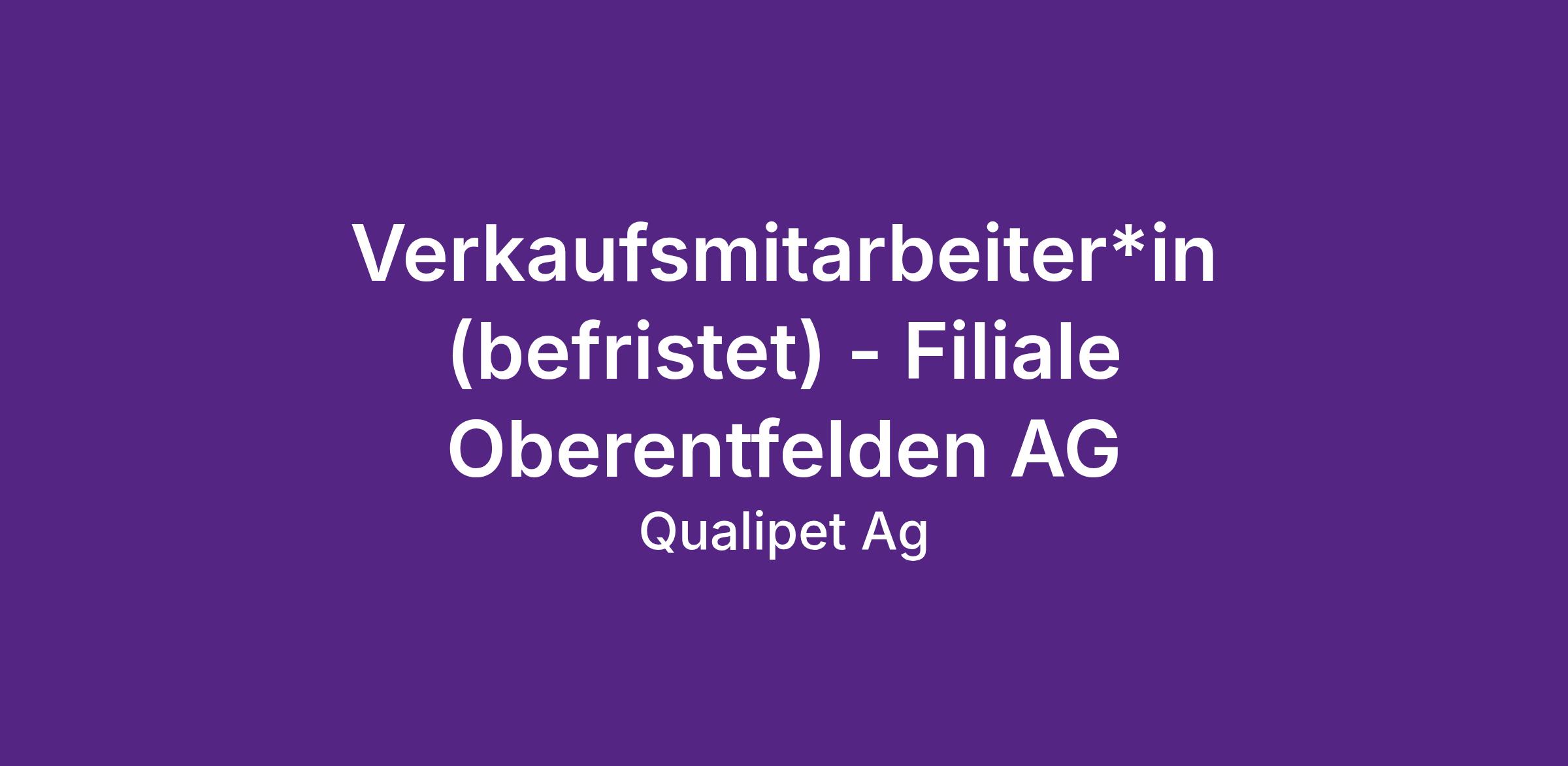 QUALIPET ist die Nummer 1 im Schweizer Zoofachhandel mit über 80 Filialen und dem Hauptsitz in Dietlikon, beschäftigt über 800 Mitarbeitende, rund 100 davon in Ausbildung. QUALIPET bietet das grösste Haustierbedarf-Sortiment in der Schweiz an, welches in den Filialen und im Onlineshop erhältlich ist. Neben hochwertiger Nahrung für alle gängigen Haustiere, bietet QUALIPET auch ein umfangreiches Sortiment an Zubehör und Accessoire für Haustiere an. Als Schweizer Familienunternehmen steht QUALIPET für eine artgerechte Haltung von Tieren, für Beständigkeit und Qualität. Dabei stehen die Haustiere, die Kundschaft und die Mitarbeitenden gleichermassen im Mittelpunkt des Interesses.