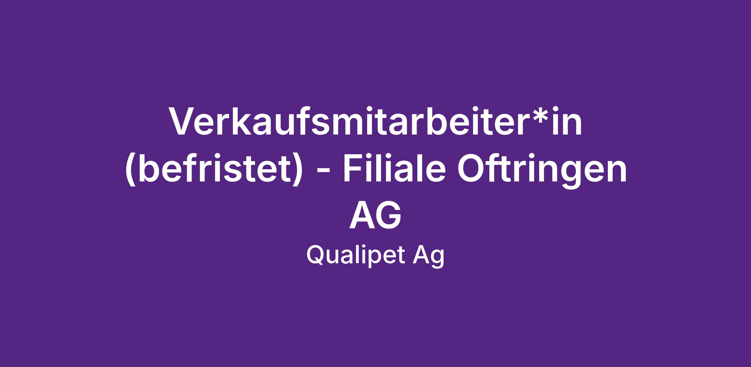 Verkaufsmitarbeiter*in (befristet) - Filiale Oftringen AG